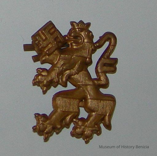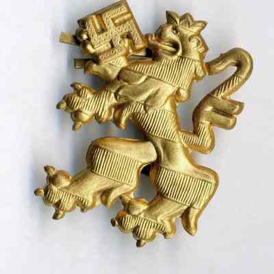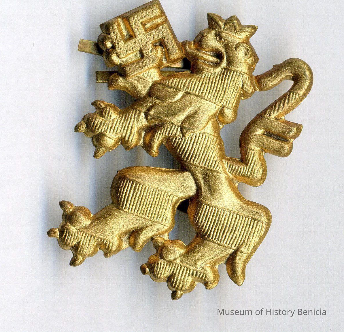 Nazi insignia - gold stylized lion holding a swastika; no markings on back; part of a possible set; perhaps collar or lapel insignia