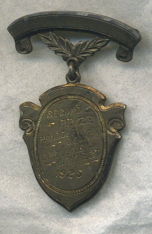 "Second Prize / Randolph County / Spelling Contest / 1925"