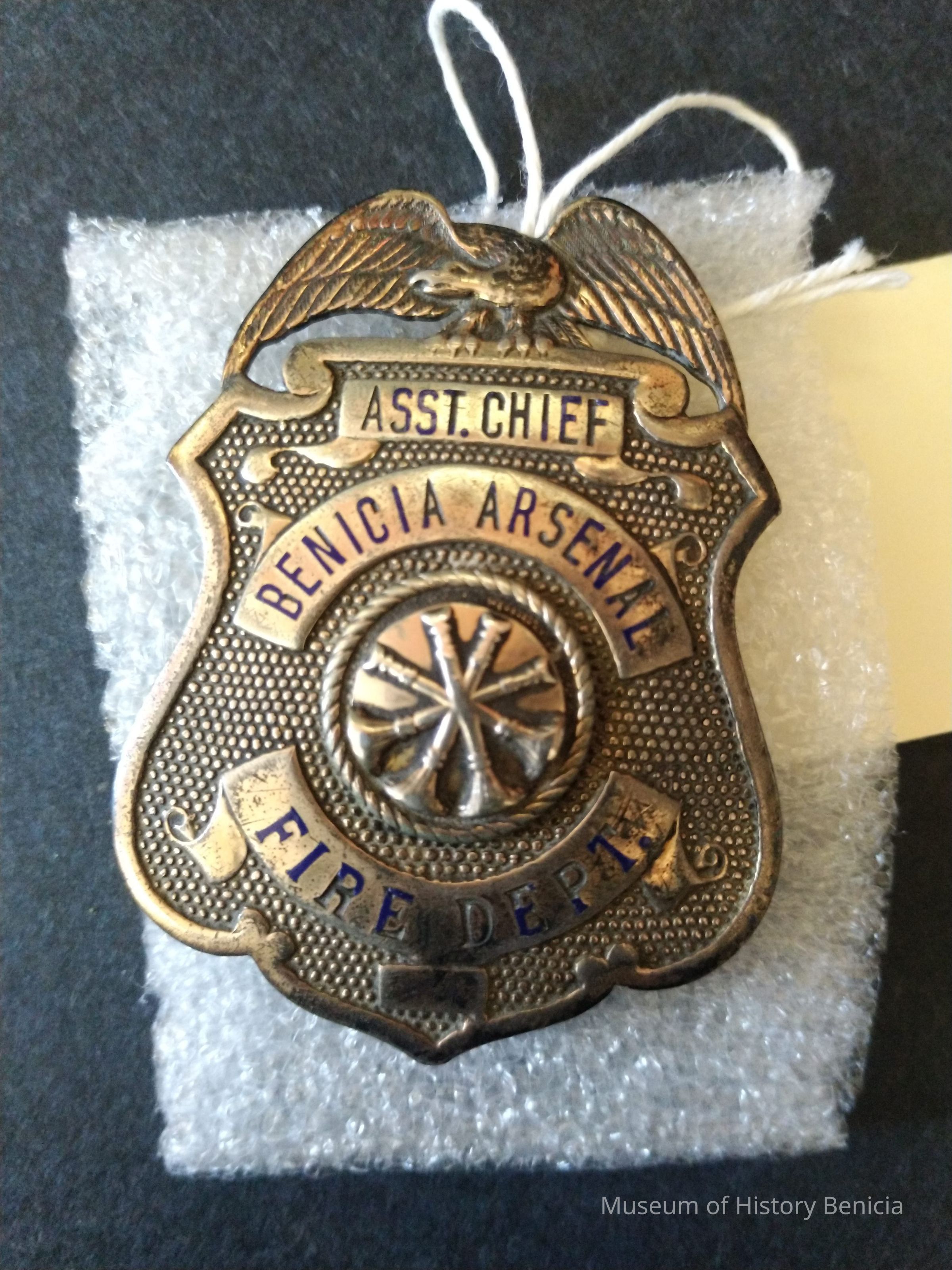 Silver platedmetal Assistant Chief Benicia Arsenal Fire Department Badge