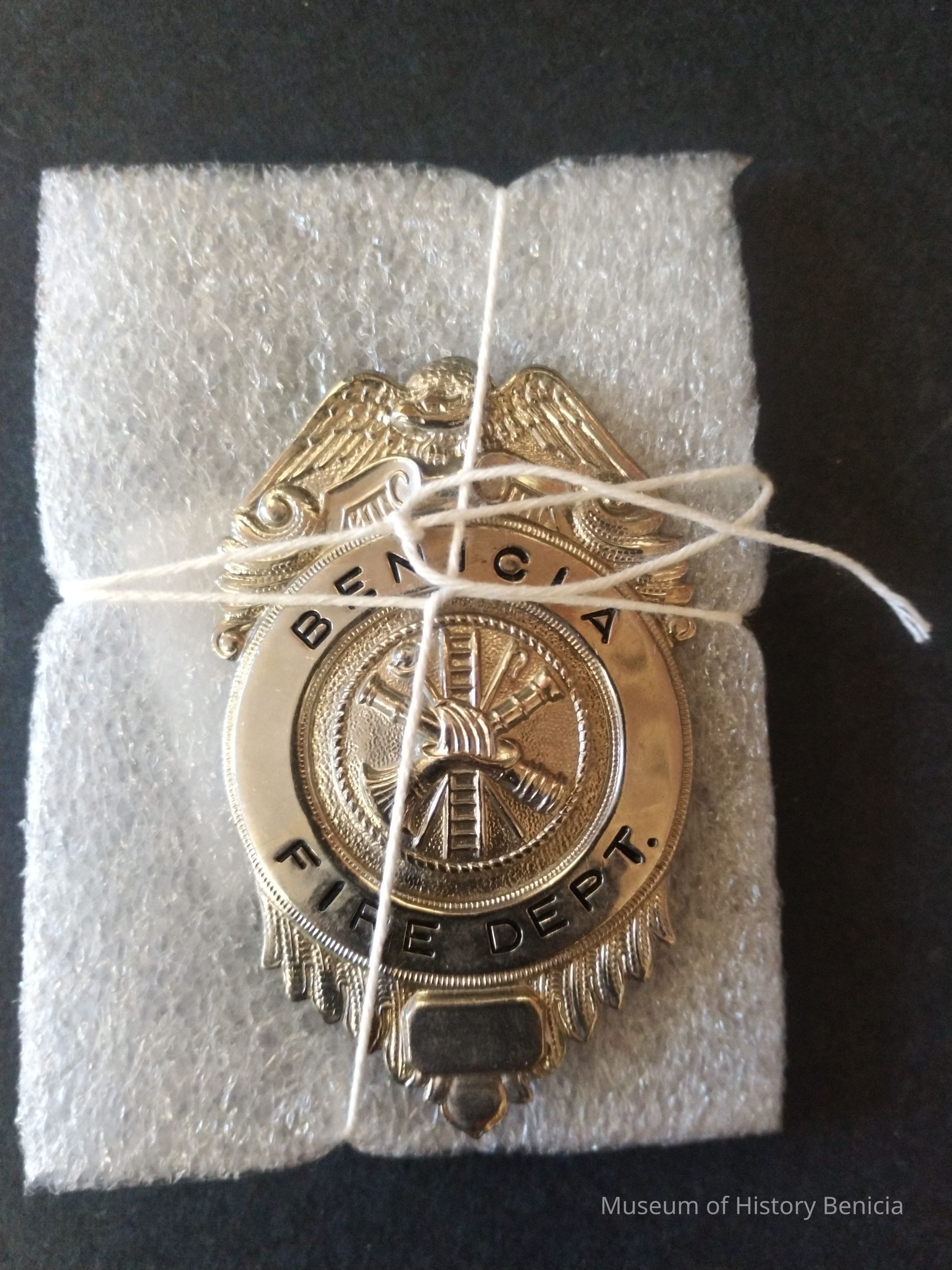 Benicia Fire Dept. Badge - Missing pun back - Silver colored metal - Possibly a Ron Rice Collection Piece