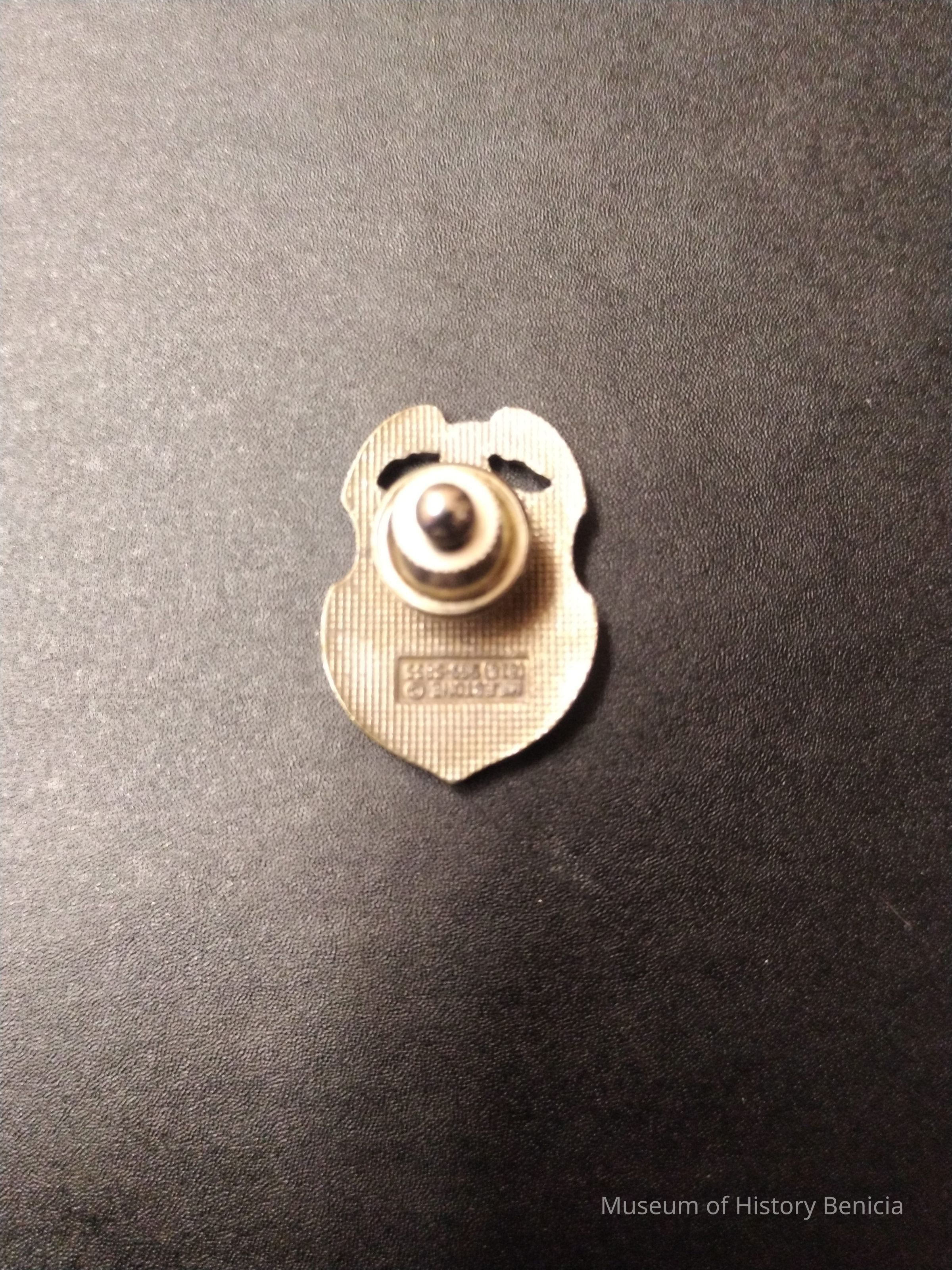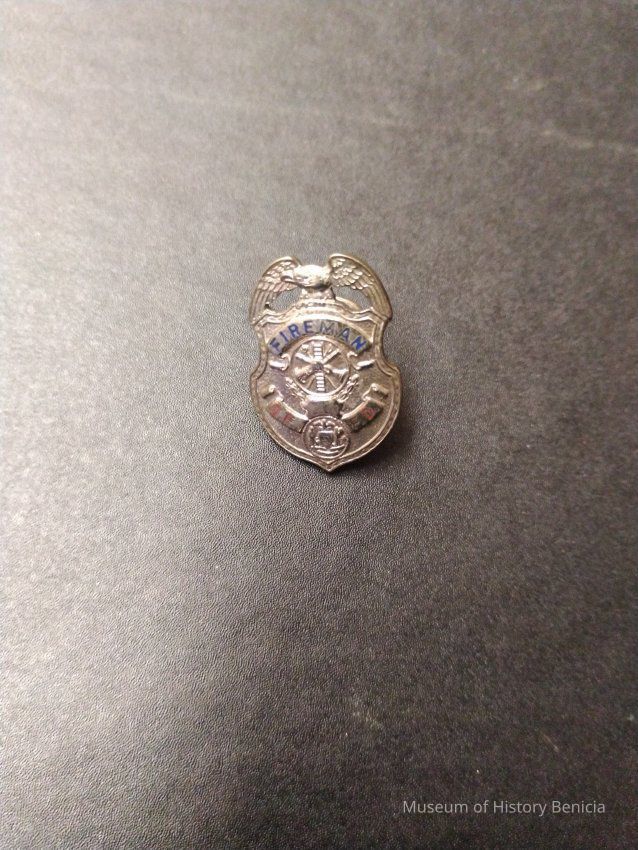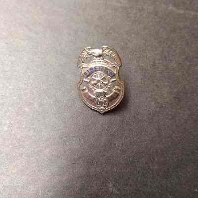 Small Silver colored SFFD Fireman Badge - Post back - Blue and red text
