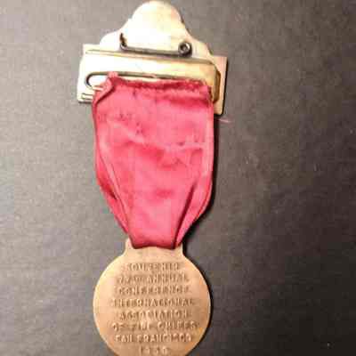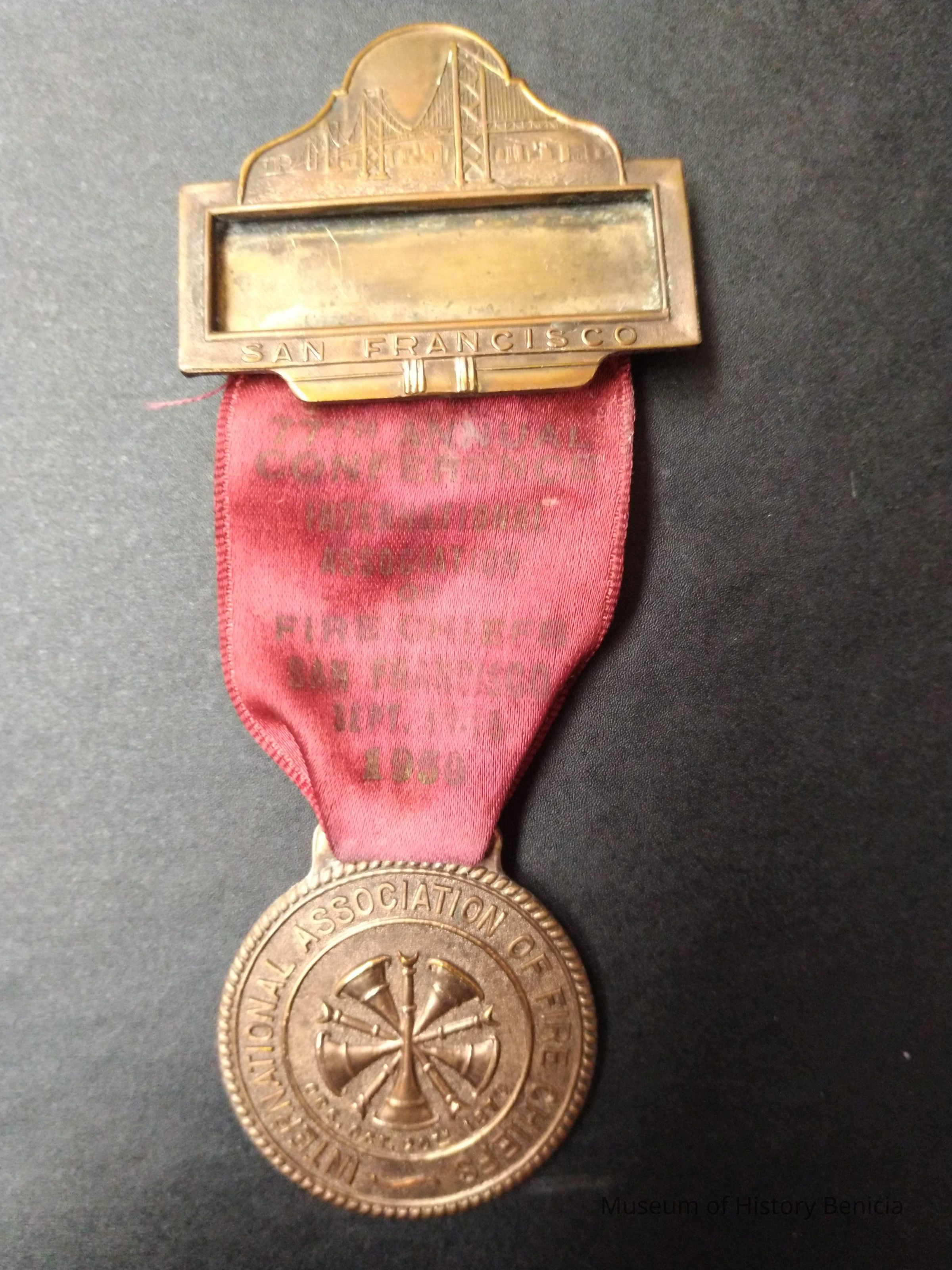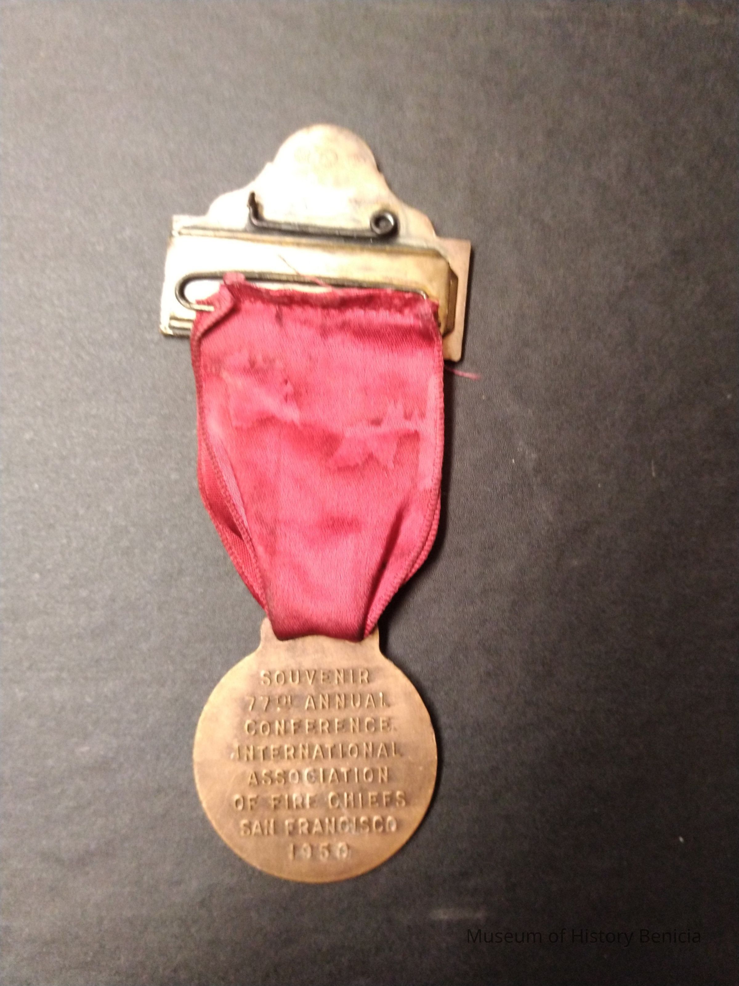 Metal and ribbon pin/badge from the Internationa Association of Fire Chief. Souvenier from the 77th annual conference 1950