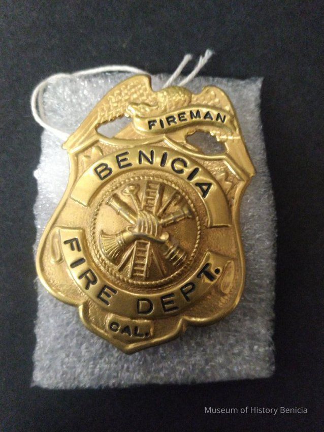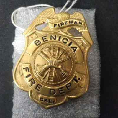Gold Colored Benicia Fire Dept. CAL Fireman Badge - Pin Back