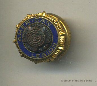 Lapel Pin - "American Legion" around the edge with a star in the center; blue enamel and brass; 1/2" diameter, screw-on back