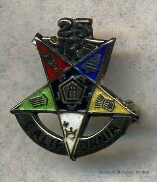 Masonic Pin - enameled multi-colored star; at top: 25 yrs and at bottom: California 5/8" x 3/4"