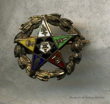 Masonic Pin - enameled multi-colored star over a gold wreath; indistinguishable maker's mark on the back; 5/8" in diameter