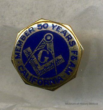 Masonic Pin - blue on gold - member 50 years F & AM California clutch back 5/8" diameter
