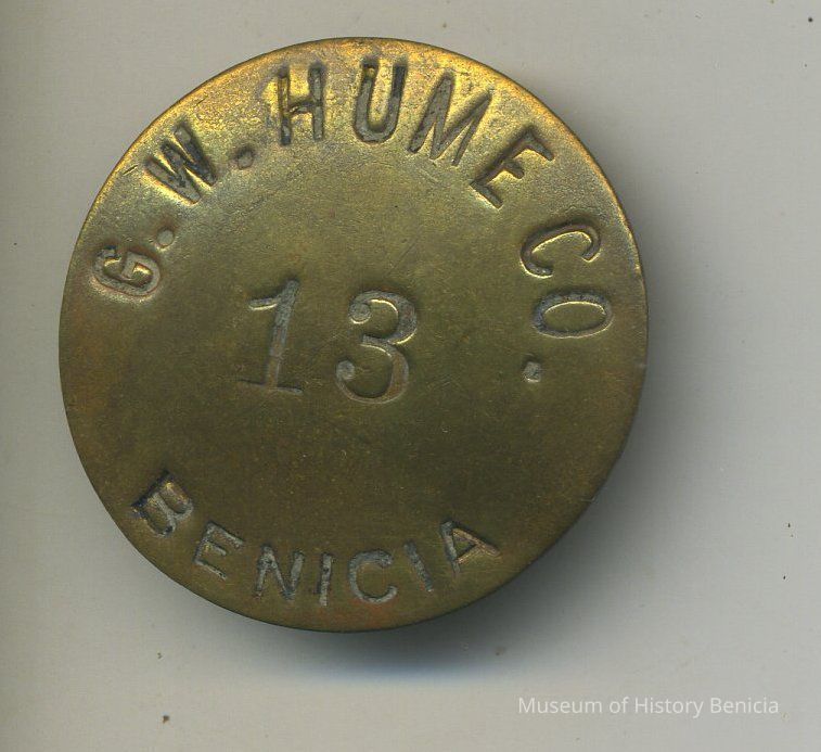 Round Identification Pin - G. W. Hume Co. 13 Benicia brass - 1-3/8" diameter