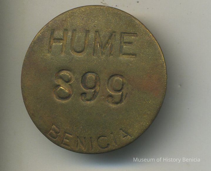 Round Identification Pin - Hume 899 Benicia brass - 1-1/4" diameter