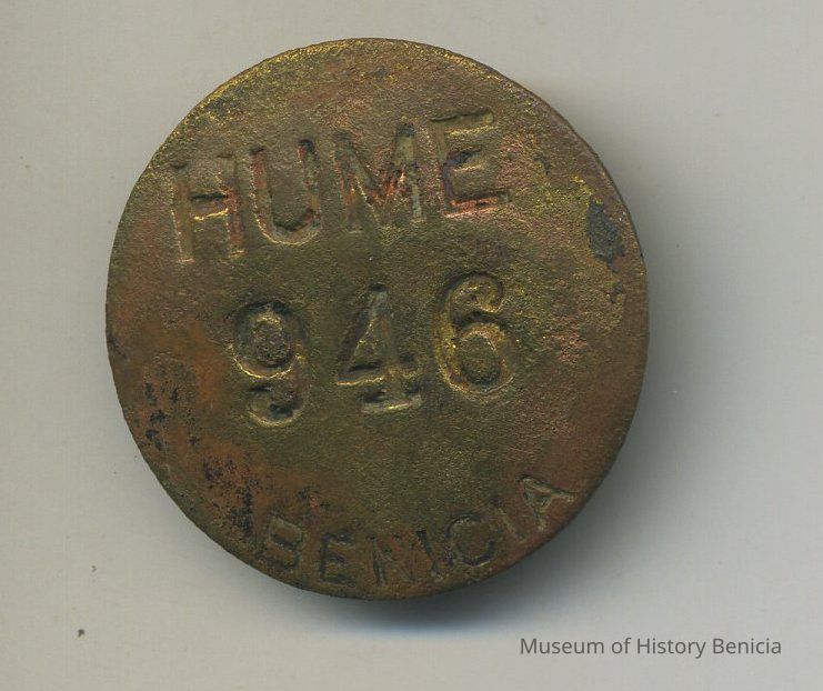 Round Identification Pin - Hume 946 Benicia brass - 1-1/4" diameter