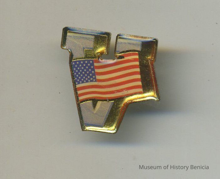 American Flag in front of a "V" Pin