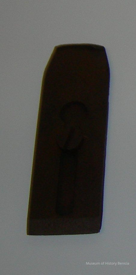 Steel plane blade - 2 pieces held together by 3/4" bolt/screw which allows user to adjust for cut depth unreadable manufacturer's mark