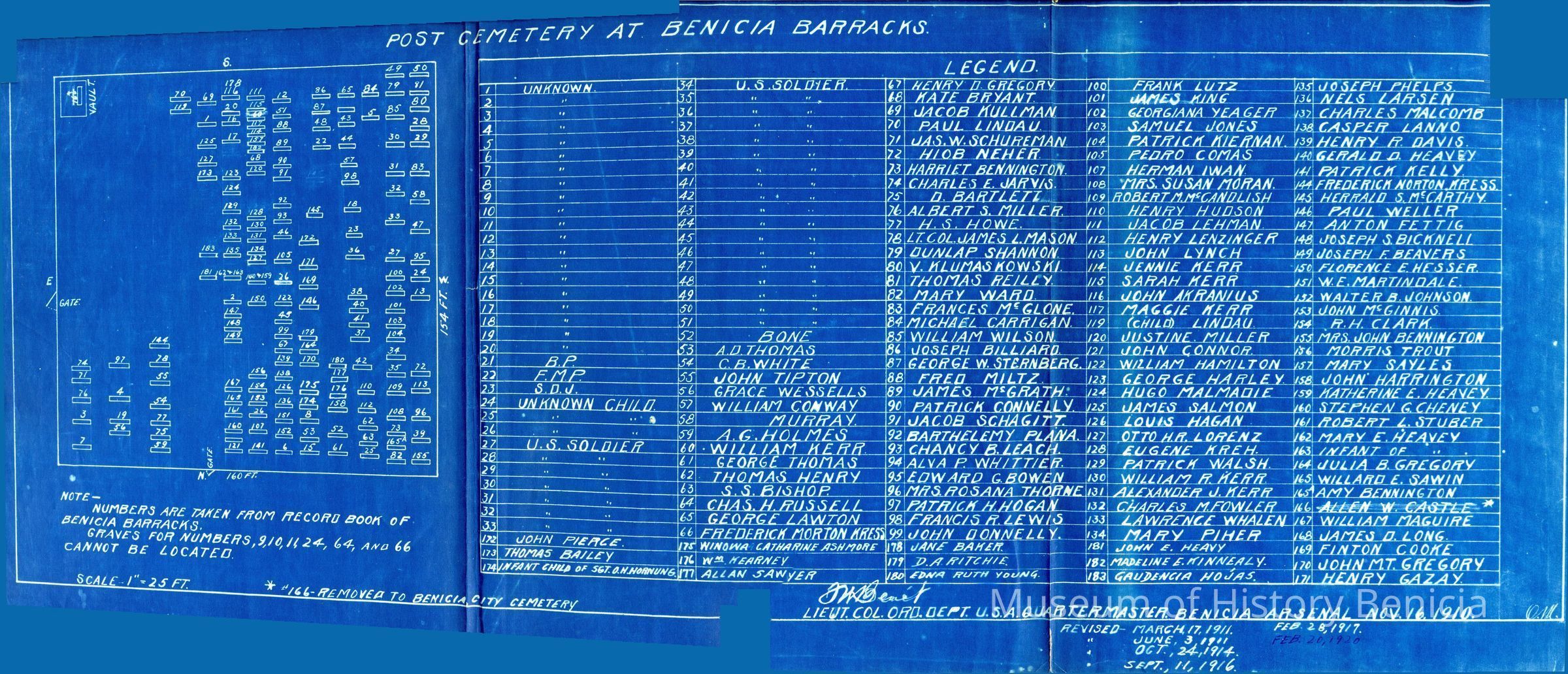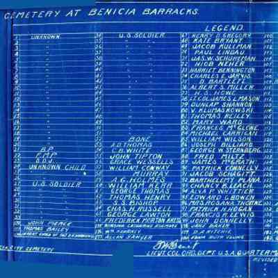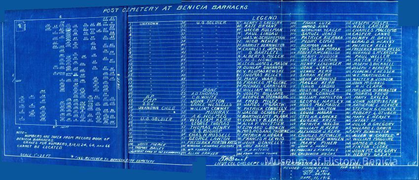 Blueprint of Post Cemetery at Benicia Barracks.