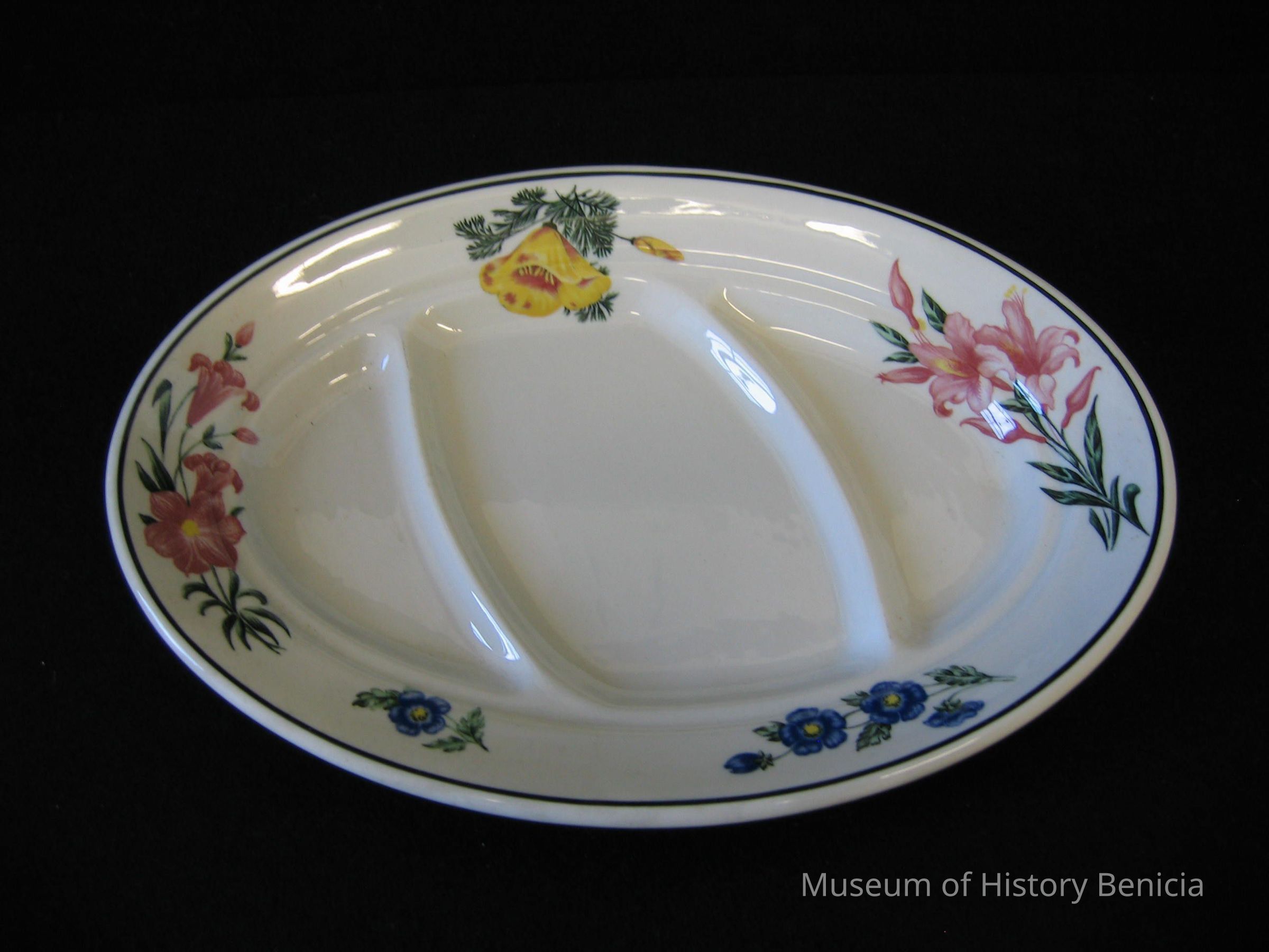 Prairie Mountain Wildflowers sectioned dinner plates made expressly for Southern Pacific Lines dining car service.