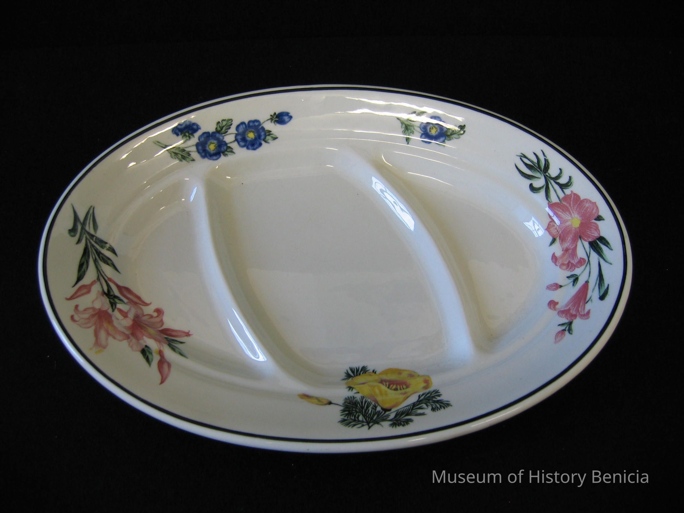 Prairie Mountain Wildflowers sectioned dinner plates made expressly for Southern Pacific Lines dining car service.