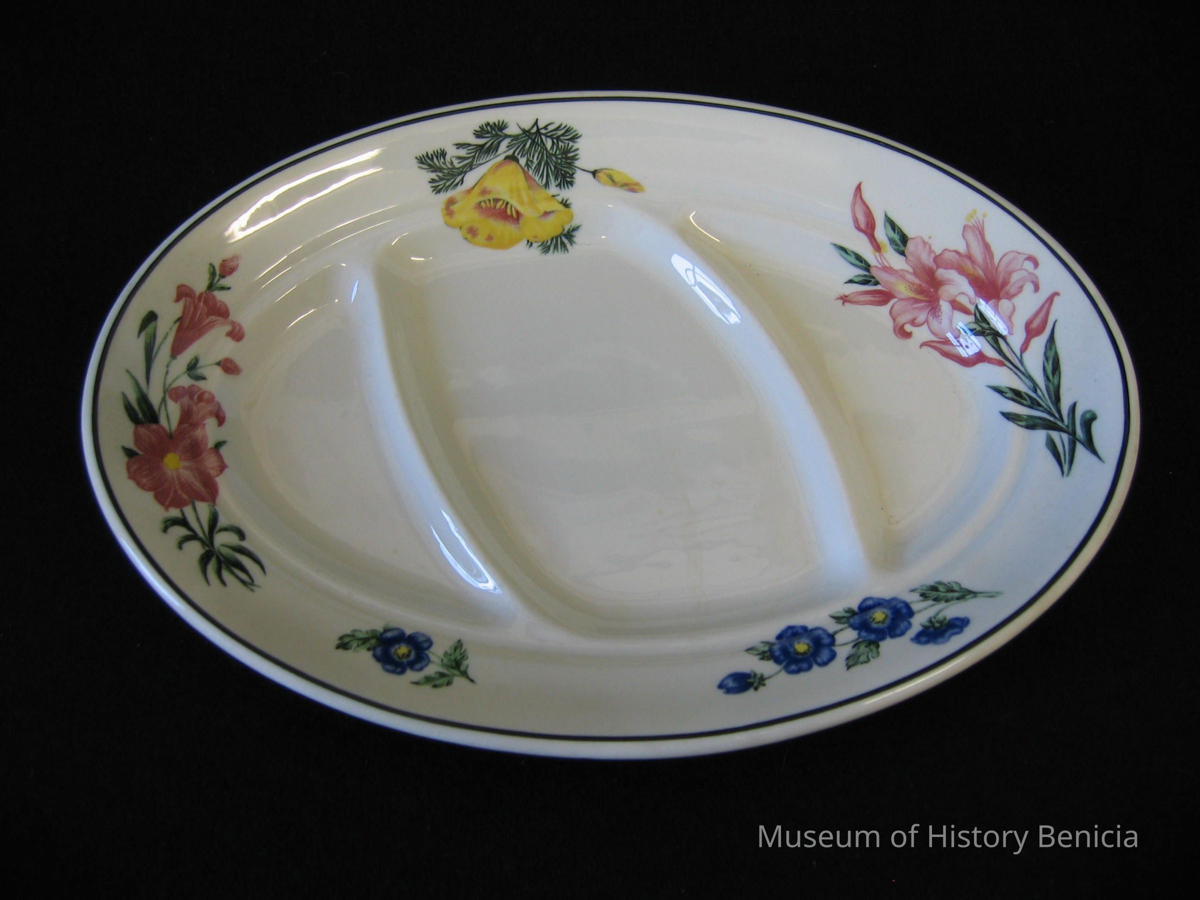 Prairie Mountain Wildflowers sectioned dinner plates made expressly for Southern Pacific Lines dining car service.