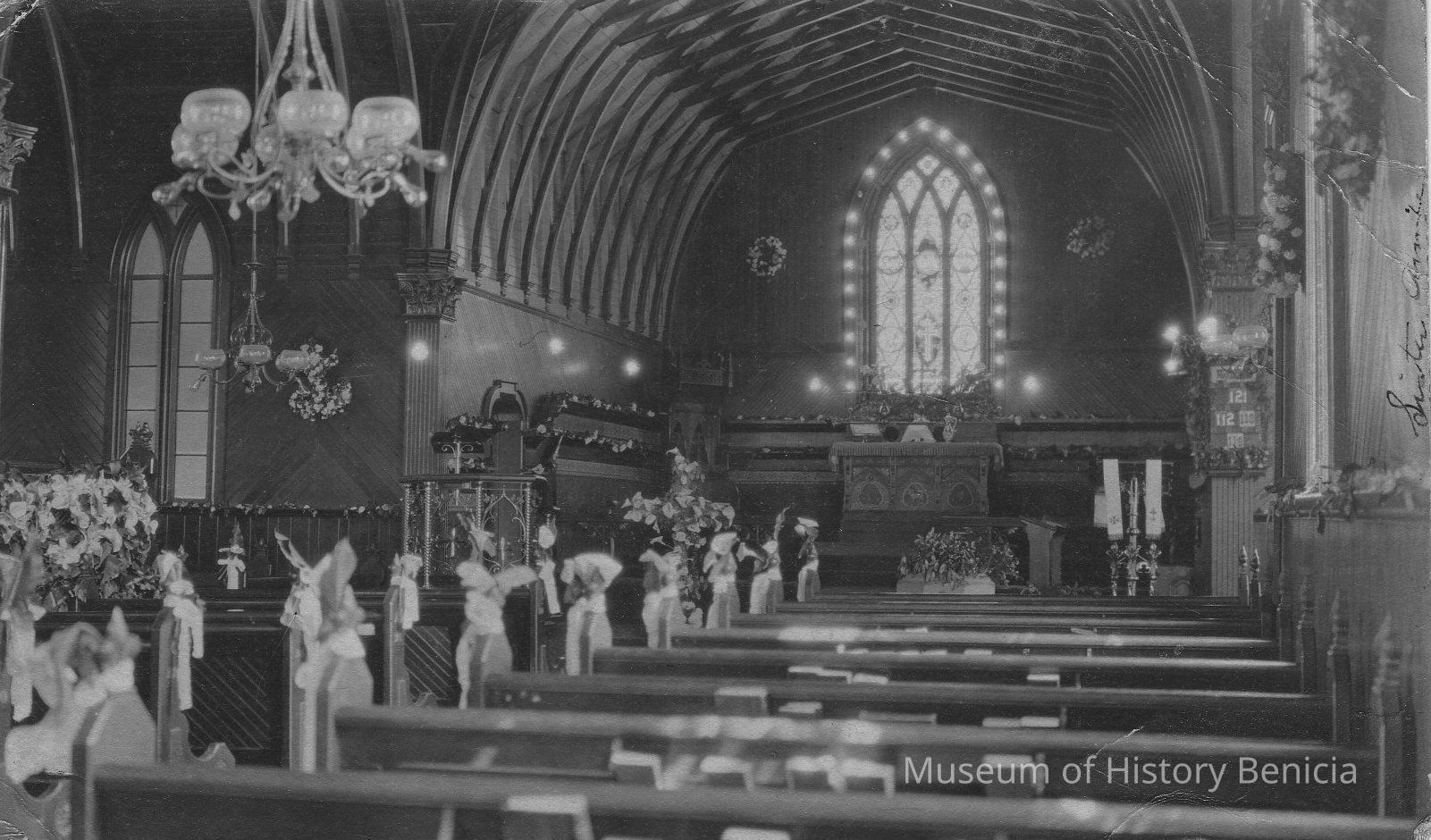 B/W postcard interior view of Episcopal Church Benicia, Cal .