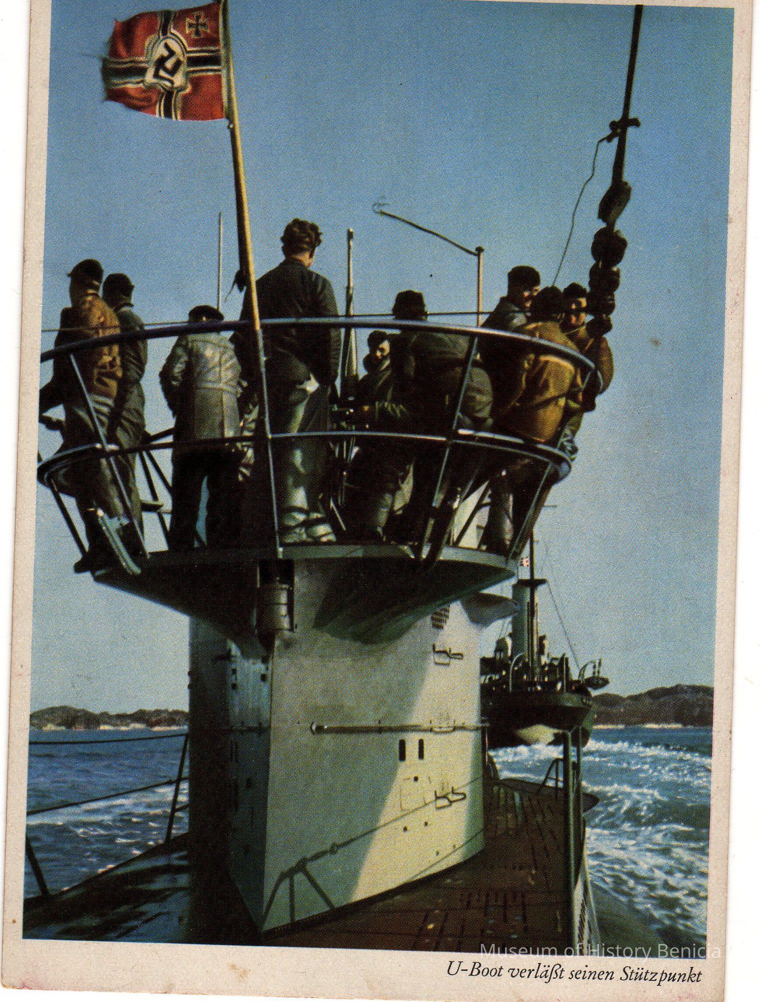 photo: German sailors atop a submarine as it is underway; Nazi flag on staffCollection