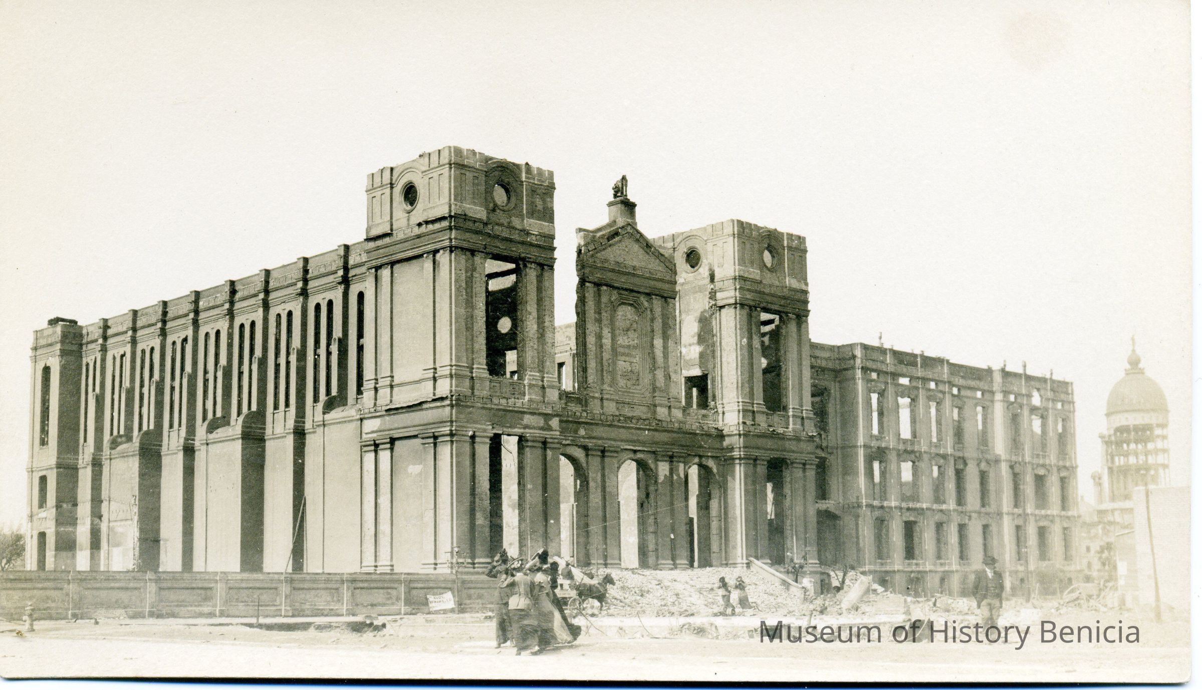 Postcard of St Ignatious in SF after the 1906 earthquake. It is an undivided back real-photo postcard. Stamp design is a plain.