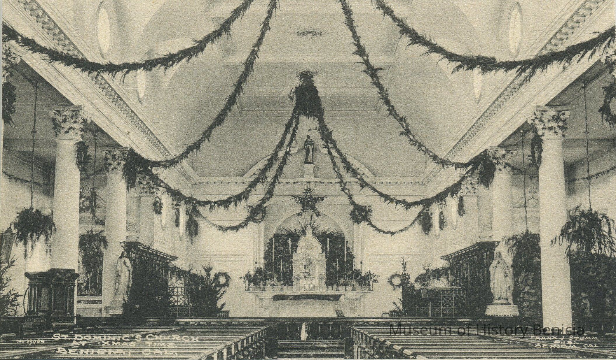 B/W Postcard "St. Dominic's Church / at Xmas Time / Benicia, Cal." Frank J. Stumm / publisher / Benicia, Cal. No. 29089