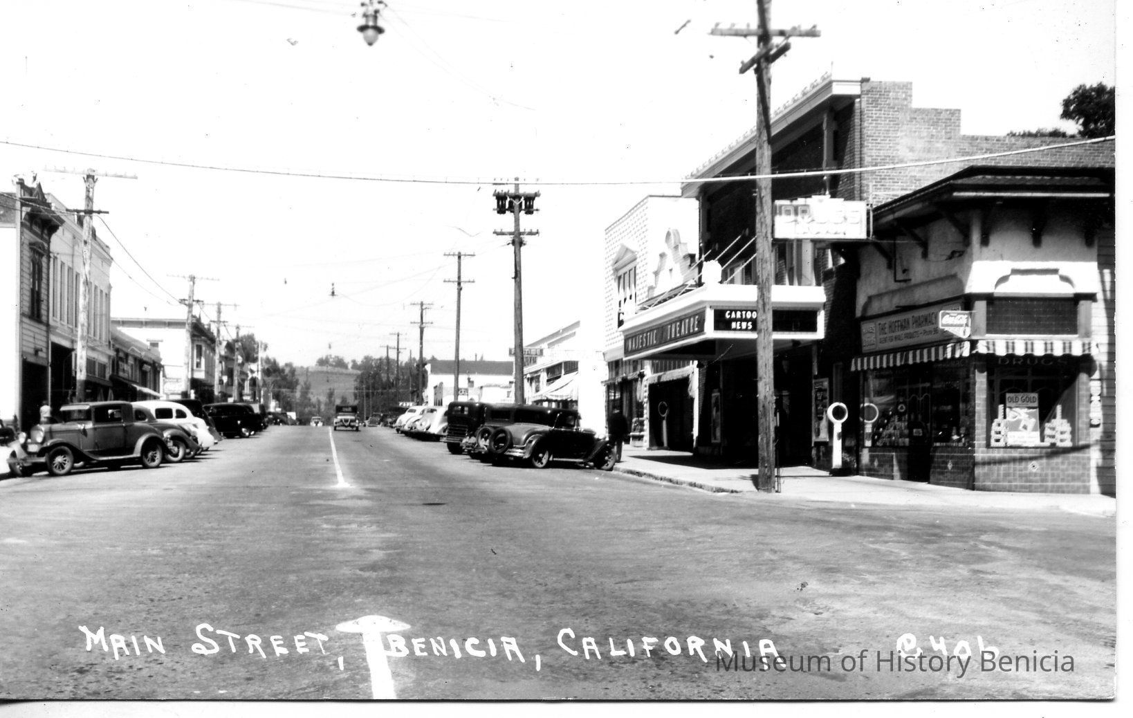B/W Photograph on a Postcard of Main Street Benicia, California c406