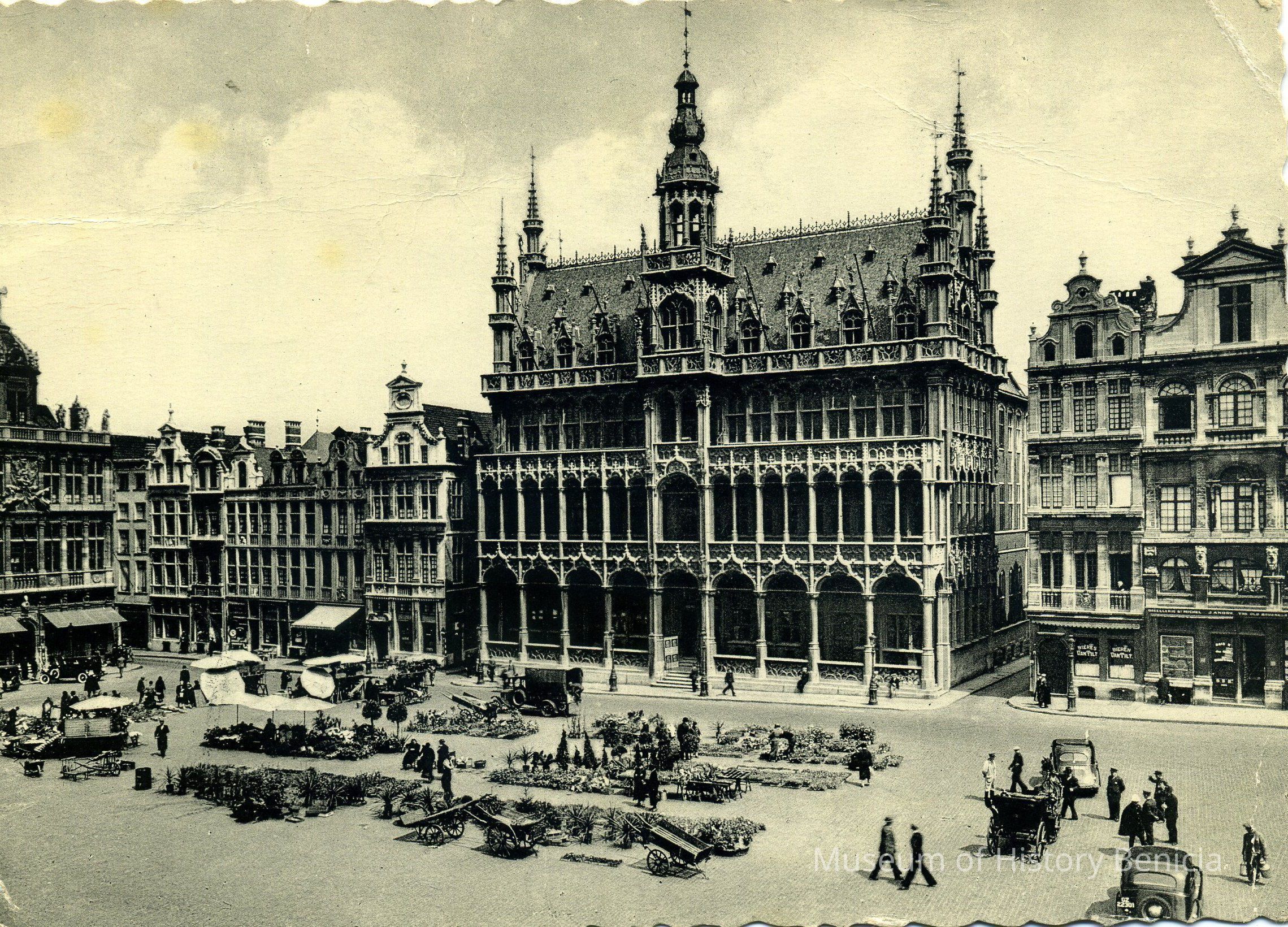 Postcard - B/W photograph of the Grand Palace / Kings House in Brussels, Belgium; send in the 1950's;