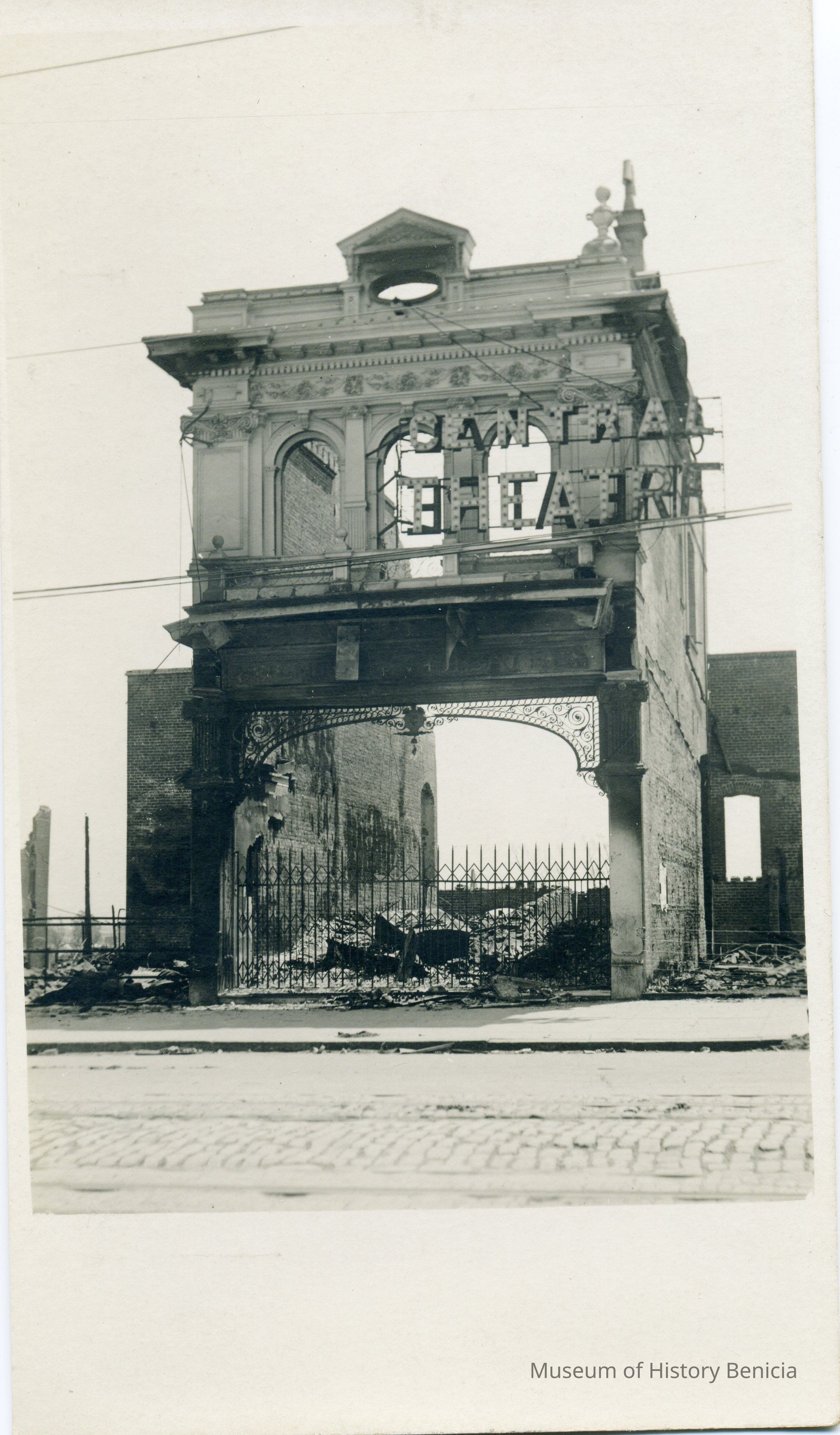 Postcard of a building. The sign on the front of the building says "Central Theater".