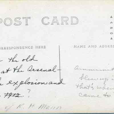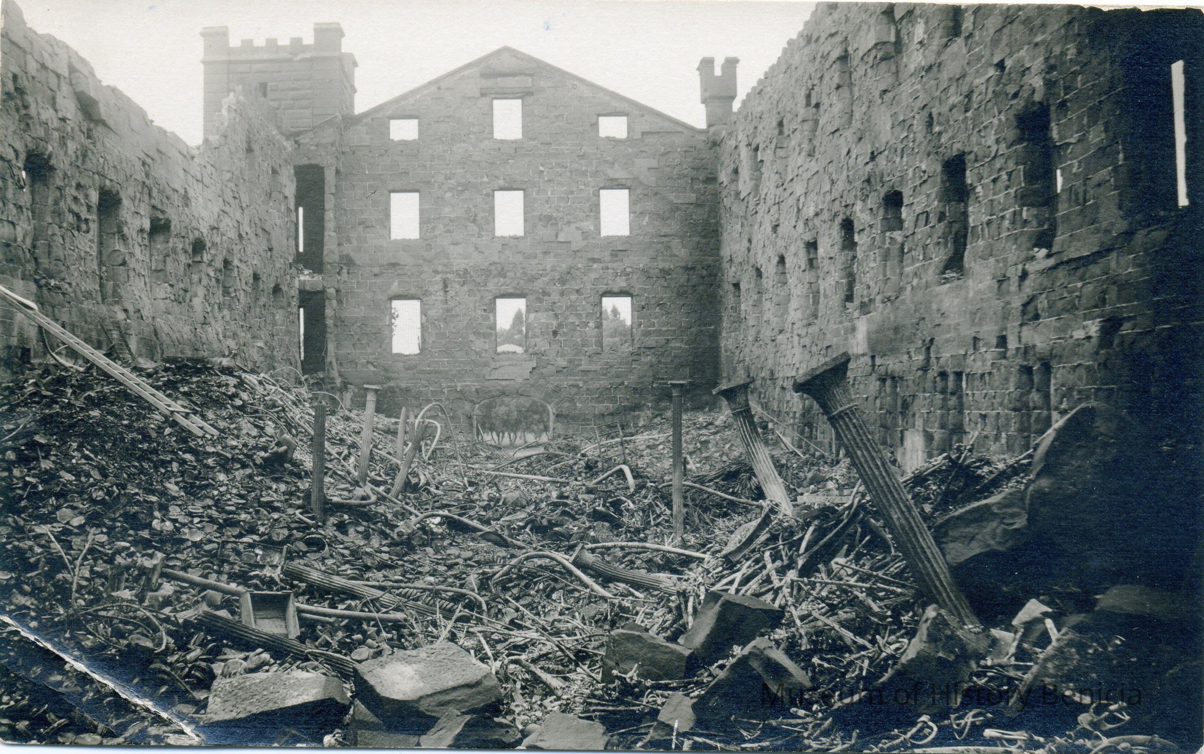 Postcard of the Clock Tower after the 1912 fire and explosion. This shows the interior of the building.
