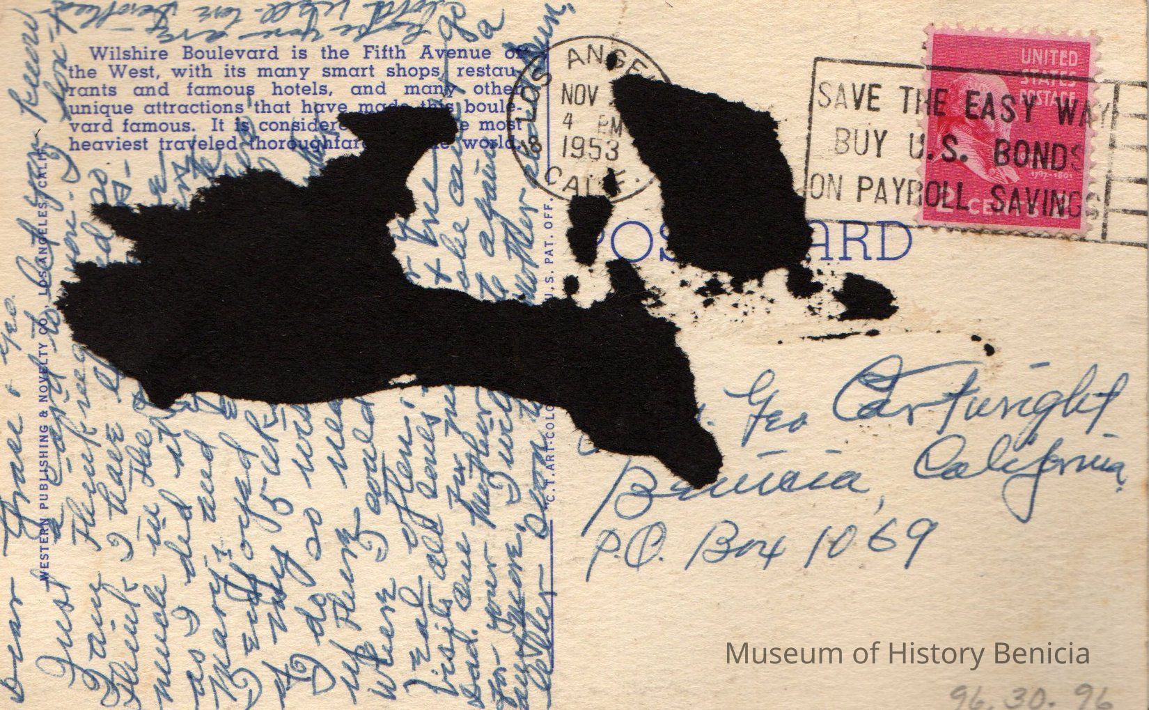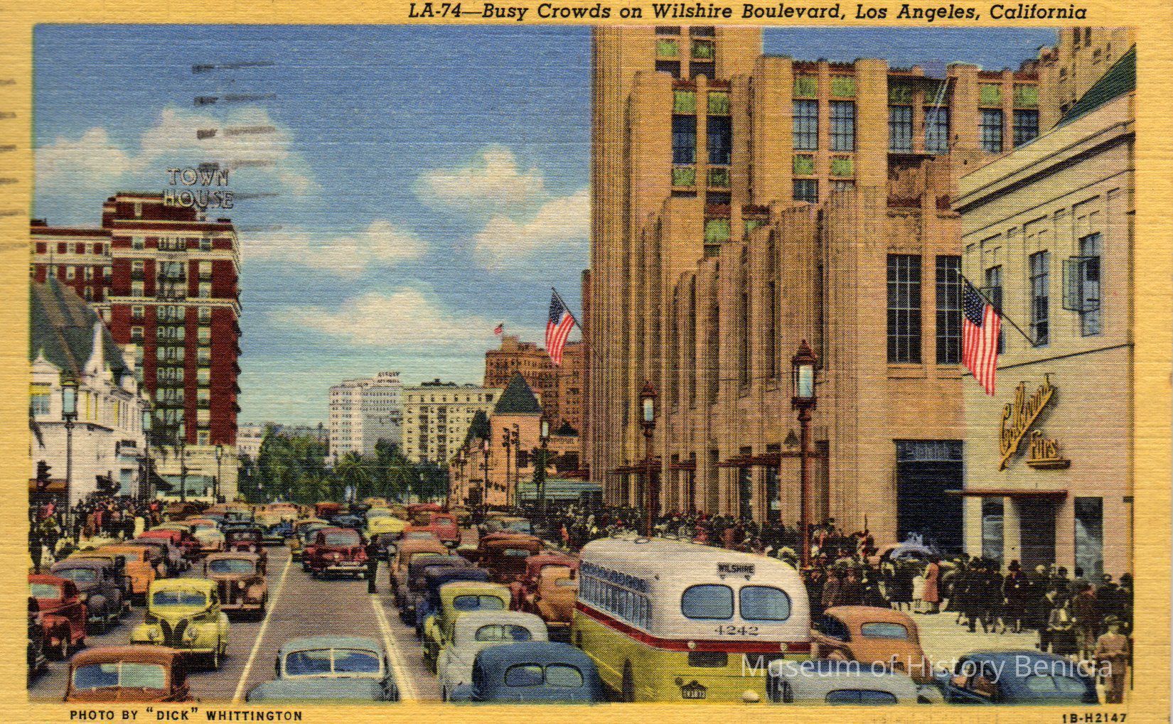 United Photo "Busy Crowds on Wilshire Boulevard, Los Angeles, California" Addressed to Mrs. Geo Cartwright, Benicia, Cal. from Dorothea.