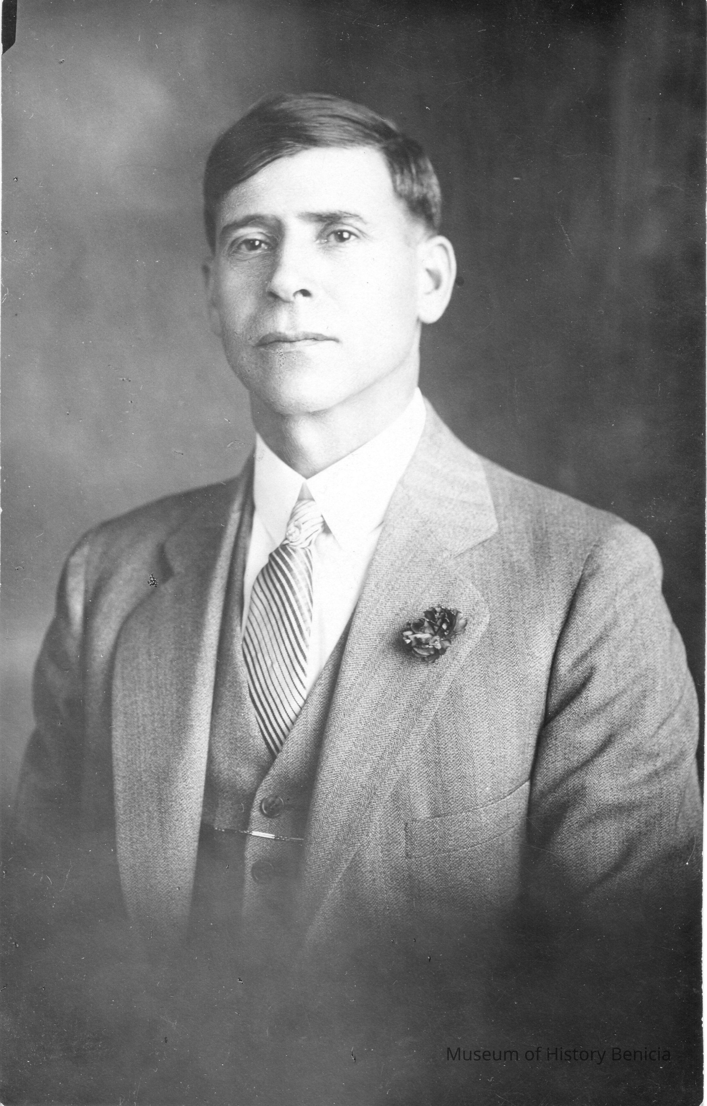 Postcard photo of a young man in a suit with stripped tie.