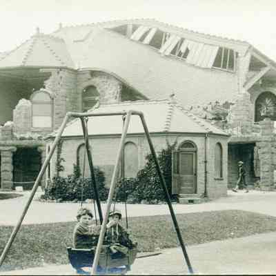 Postcard of Playland in Golden Gate Park in SF after the 1906 earthquake. Looks very similar to a Molfino negative that is in the Museum collection. It is an undivided back real-photo postcard. Stamp design is a sailing ship.Collection