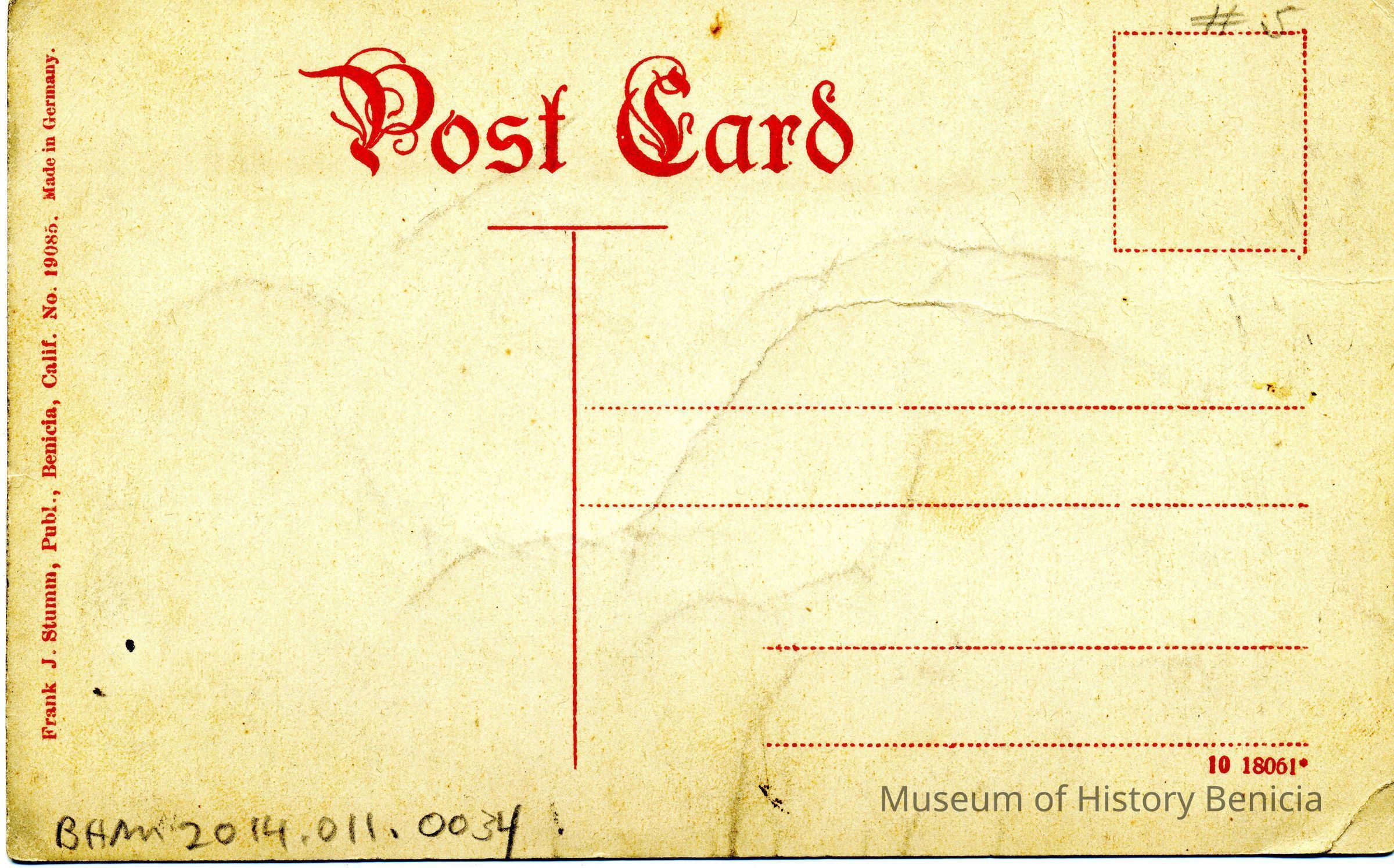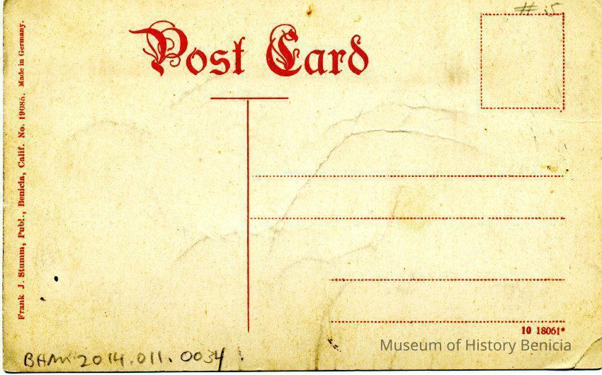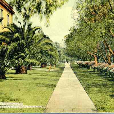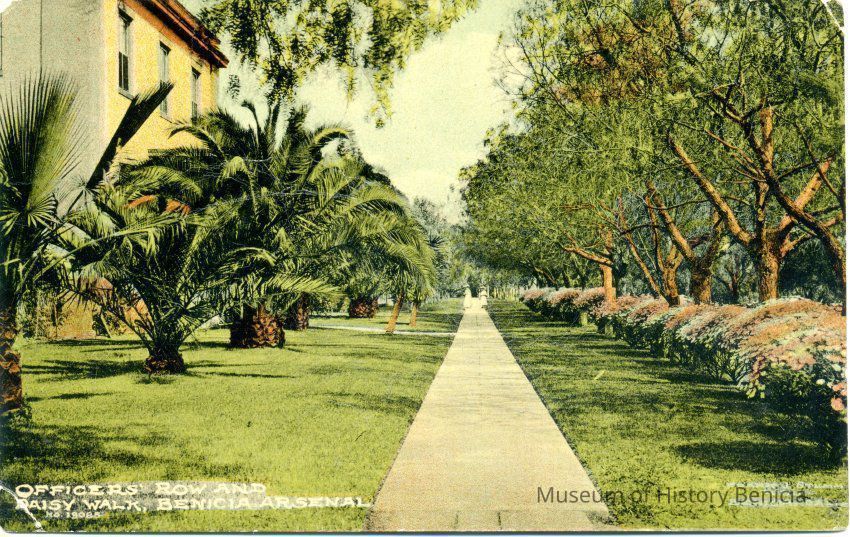 Postcard of the Benicia Arsenal along the Officer's Quarters. Taken by Frank J Stumm.