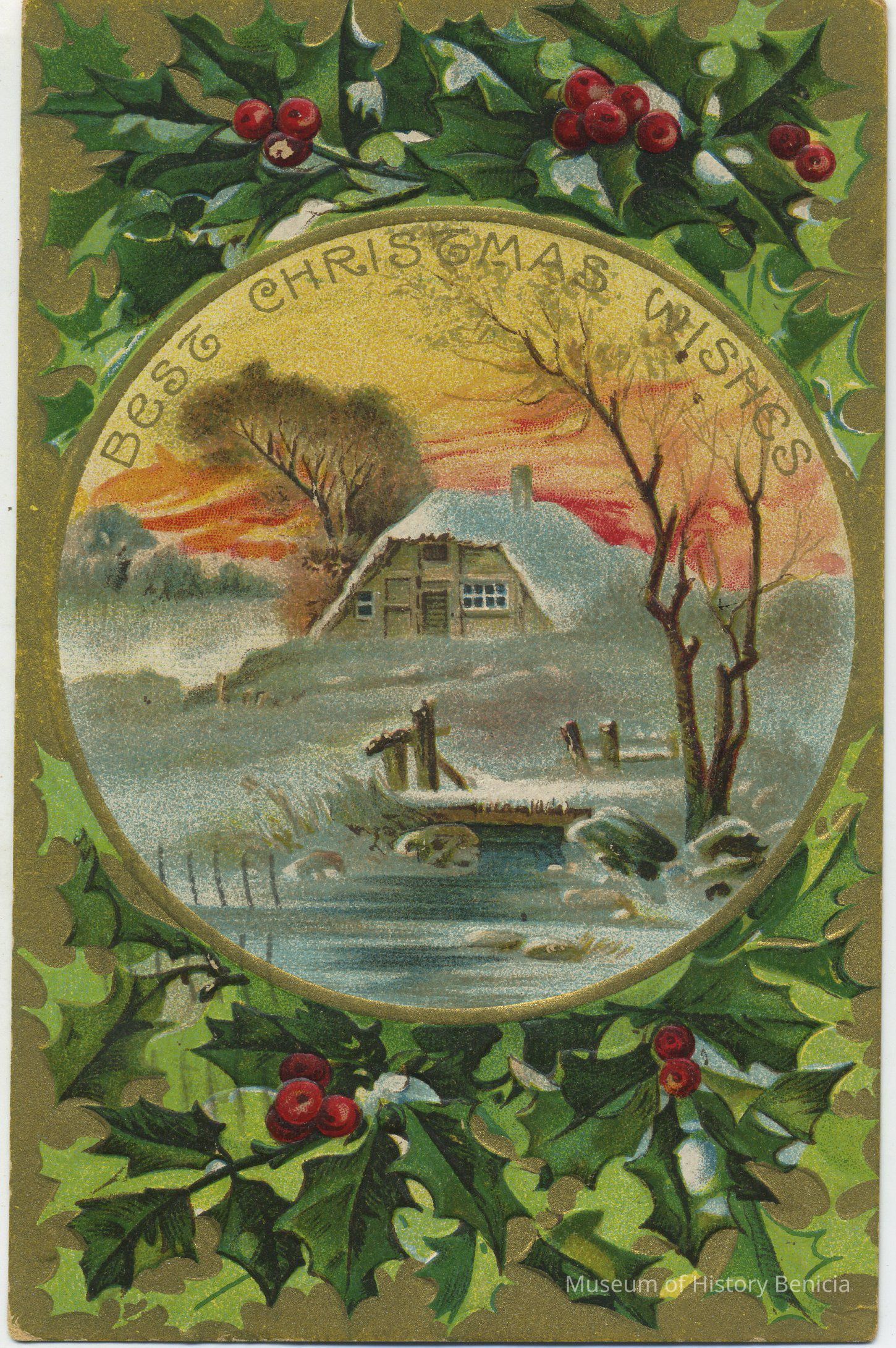 in the center of the card; "Best Christmas Wishes" in gold