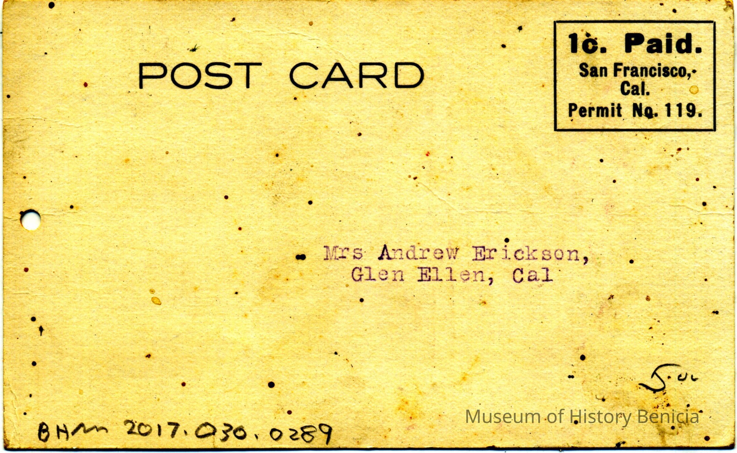Mrs. Andrew Erickson, Glen Ellen, Cal.Collection