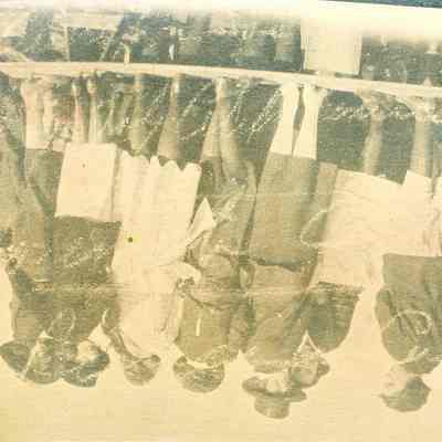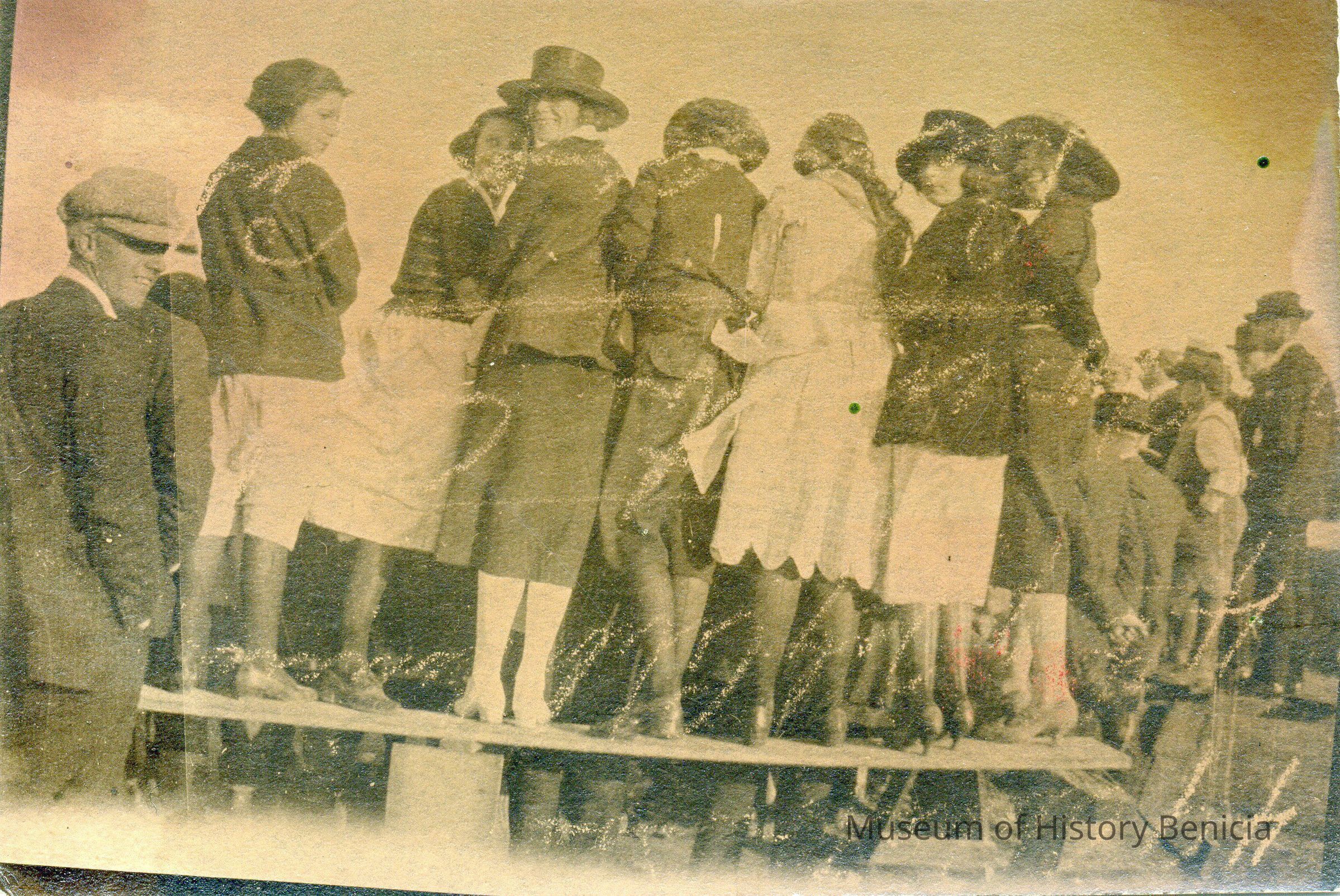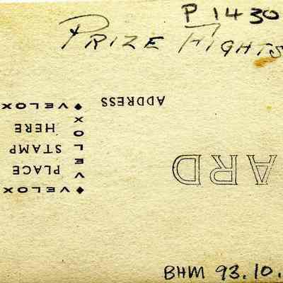 Group of men and girls watching a prize fight. None identified. This photo is a portion of a printed postcard. Circa 1920's B/W photo