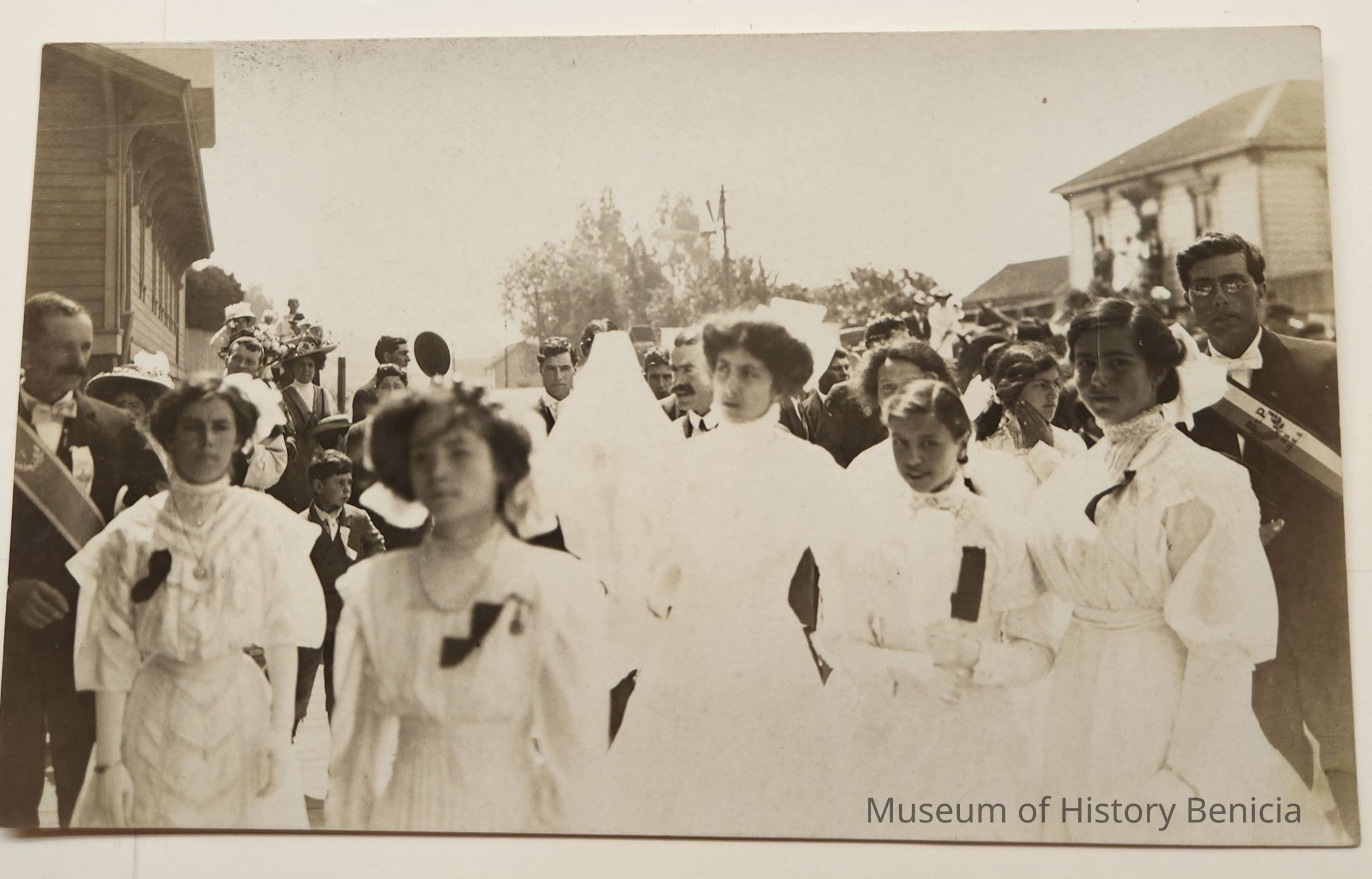 Unused B/W postcard depicting a group of girls in white dresses.