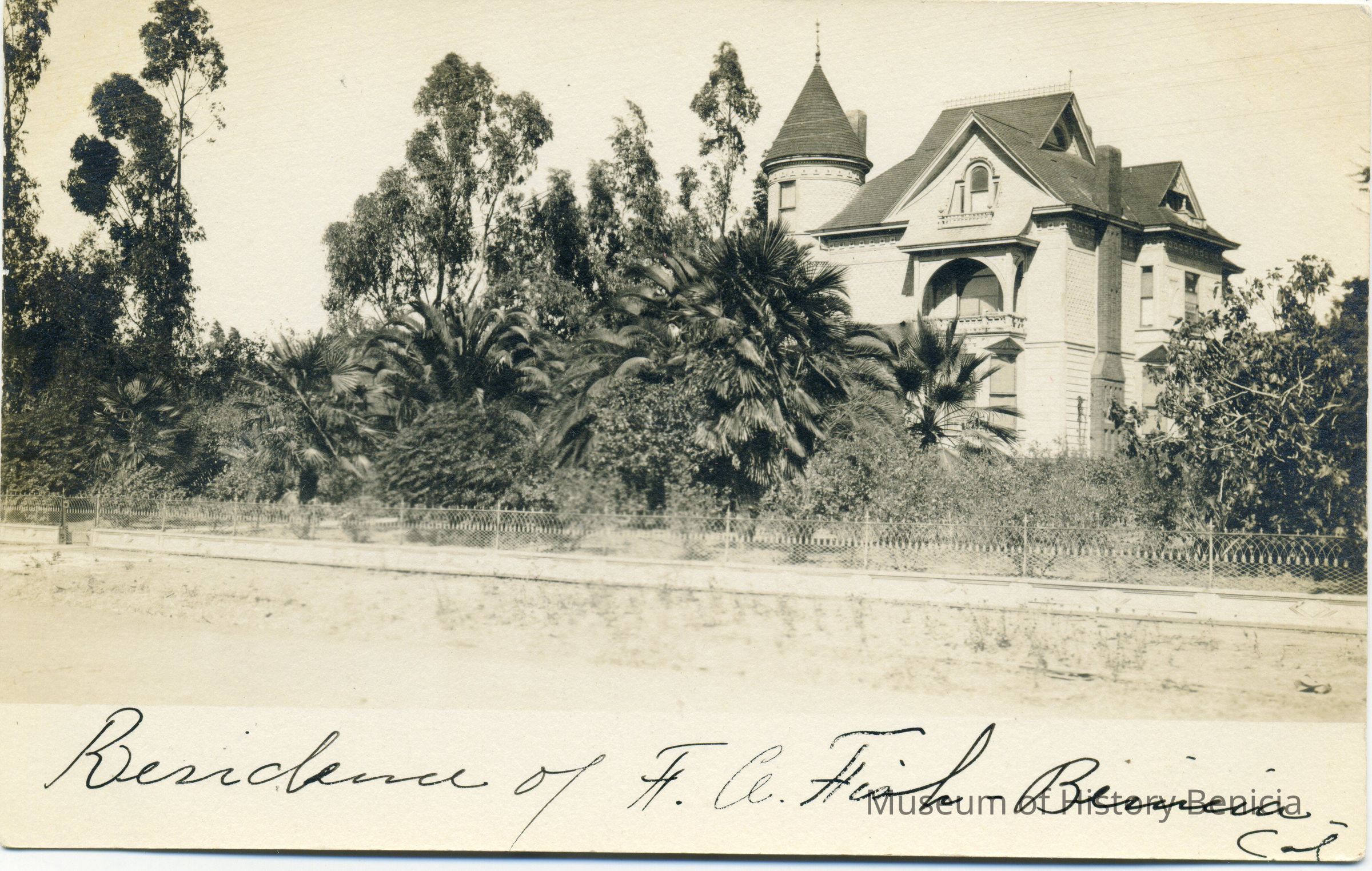 Residence of F. A. Fish Benicia, Cal. This is the Riddell-Fish house . The postcard is addressed to H.W. Davis in Berkeley. It has not been cancelled. The postcard is an undivided back card.Collection