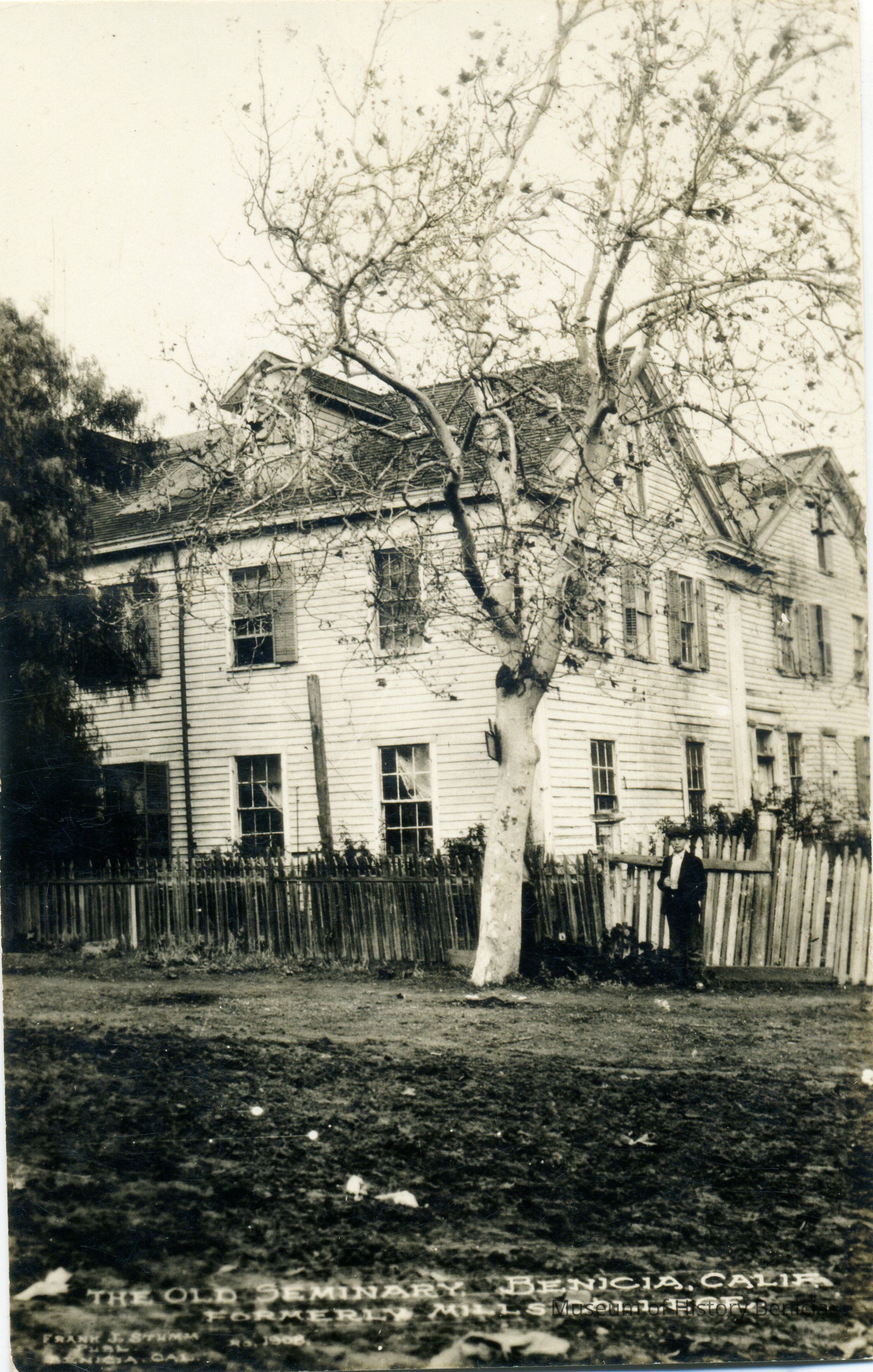 This is a photo of buildings from the Young Ladies Seminary. It is taken from a postcard by Frank Stumm. Don't know who the young boy is by the fence is in the picture.Collection