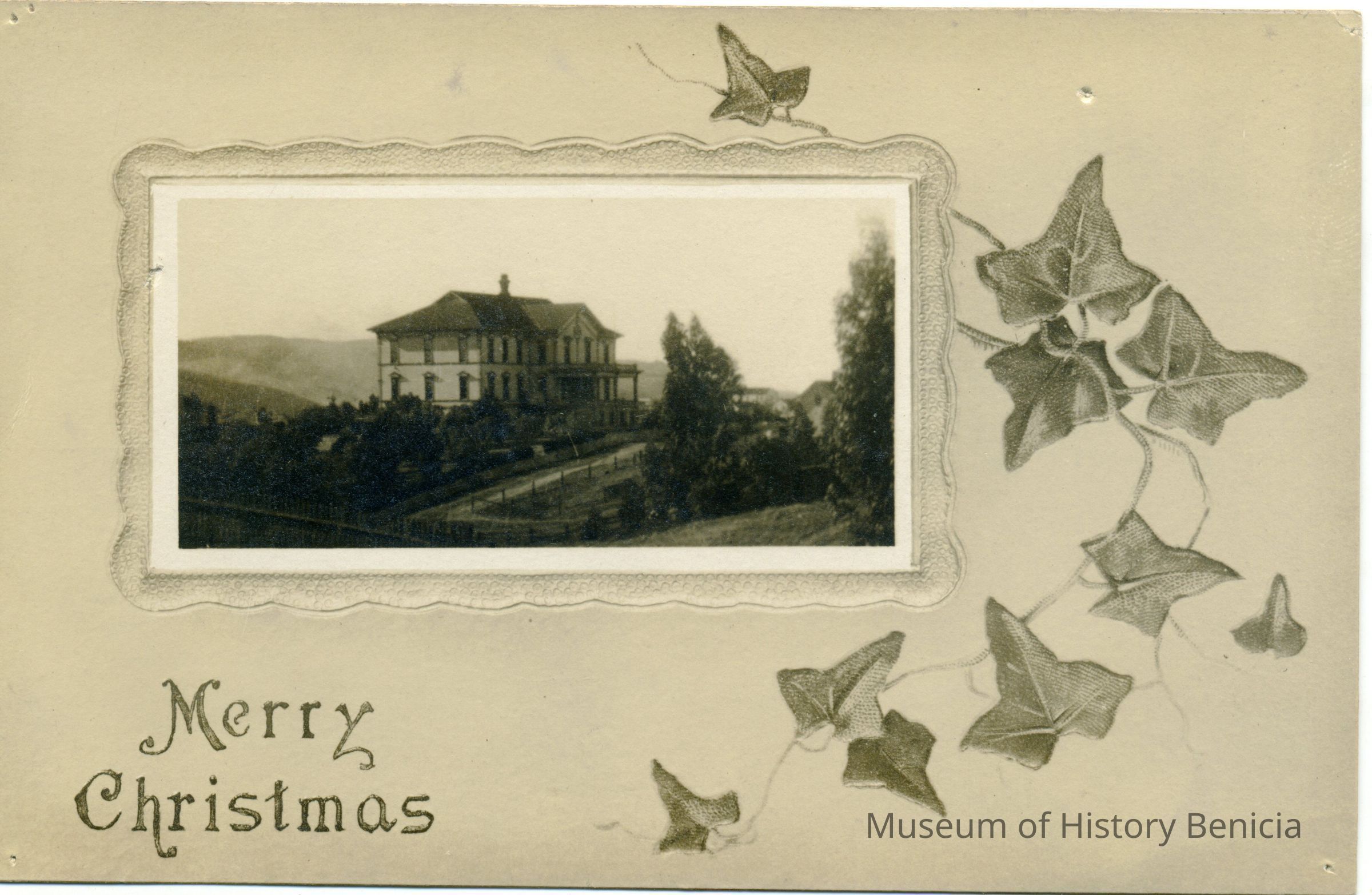 This is a postcard of the Benicia High School made as a Christmas card. It has the school pictured on the front with the words "Merry Christmas" and some Holly leaves. The back is an unused divided back postcard.Collection