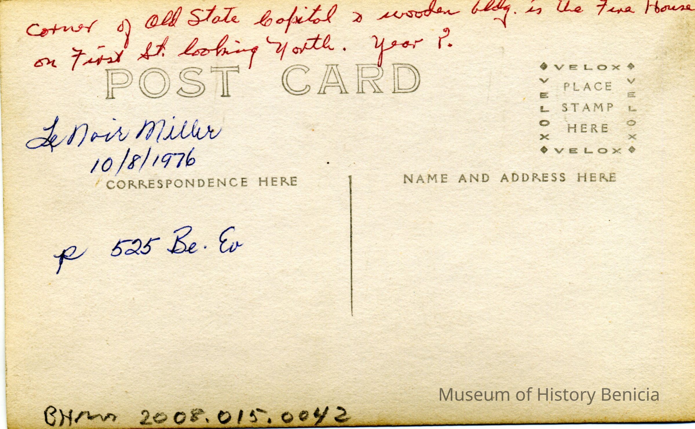 The postcard is a divided back postcard with a stamp box showing "Velox and with diamonds in the corner. This would indicate a date of 1907 to 1914.Collection