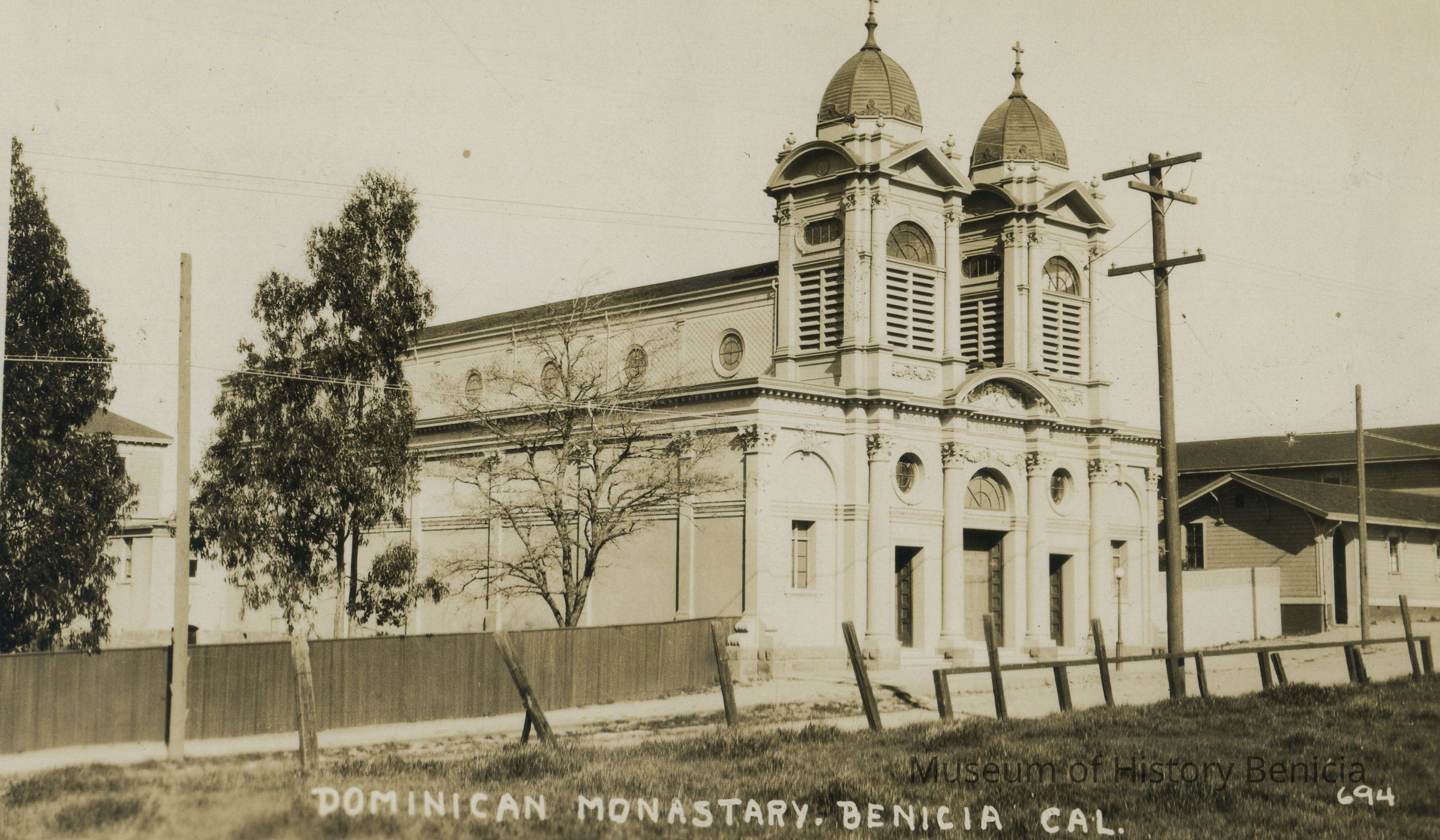 This is St. Dominics and the postcard inscription says "Dominican Monastary . Benicia Cal". The postcard was made by Bear Photo Co. in San Francisco. It is an undivided back postcard that is blank except for the name "Passalacqua Family" printed in ink.Collection