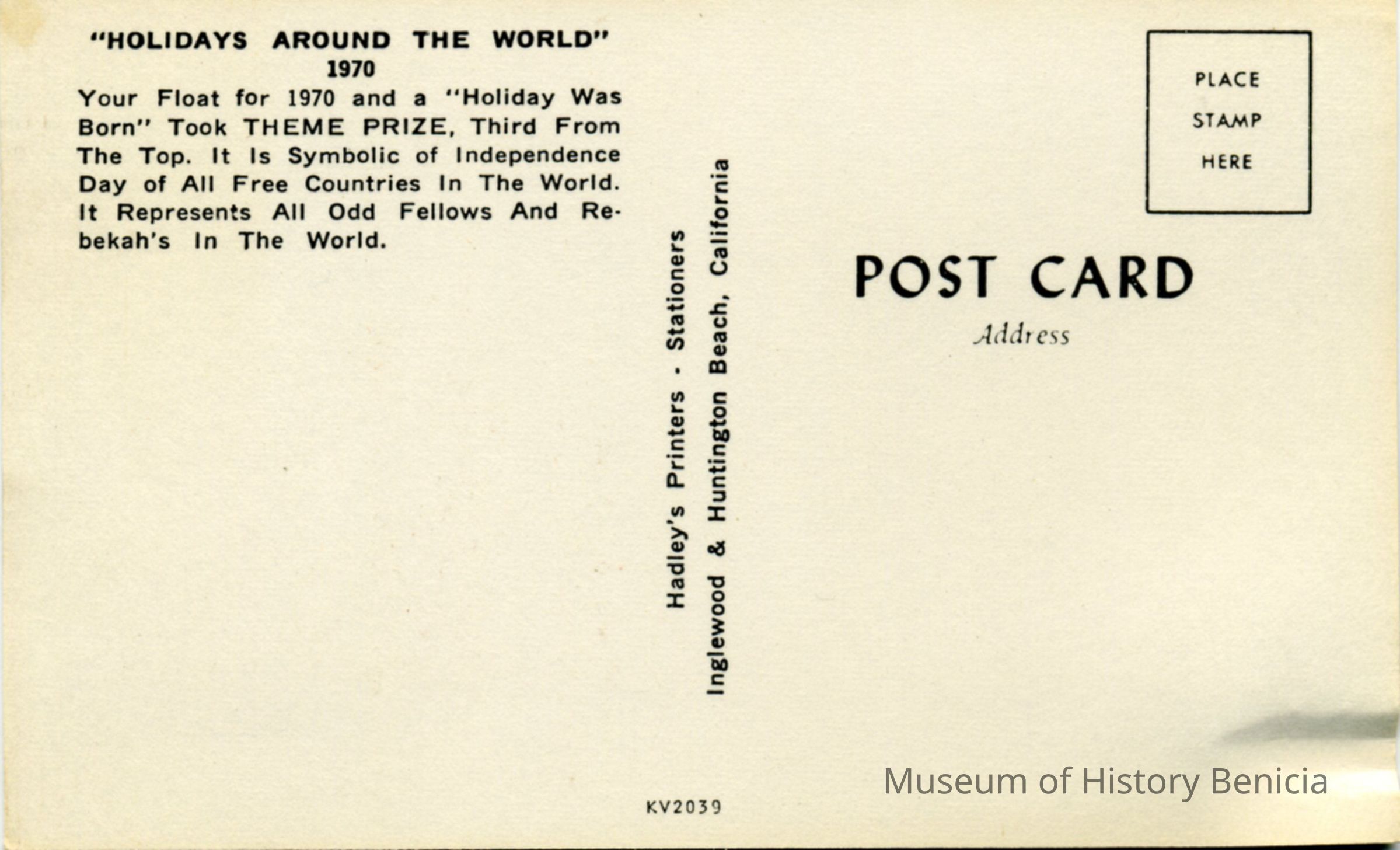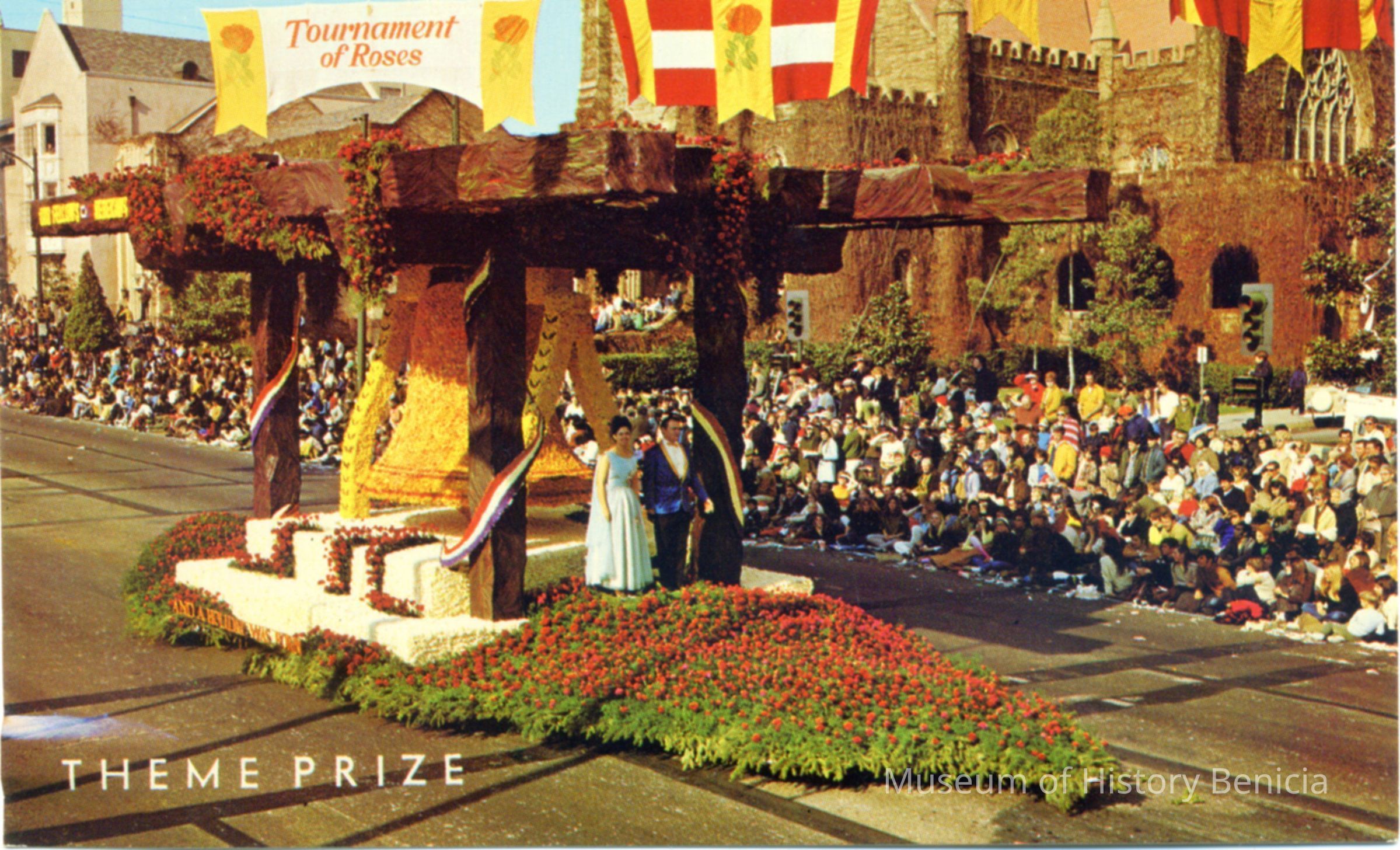 Picture postcard of the Odd Fellows/ Rebekahs float in the 1970 Rose Parade.