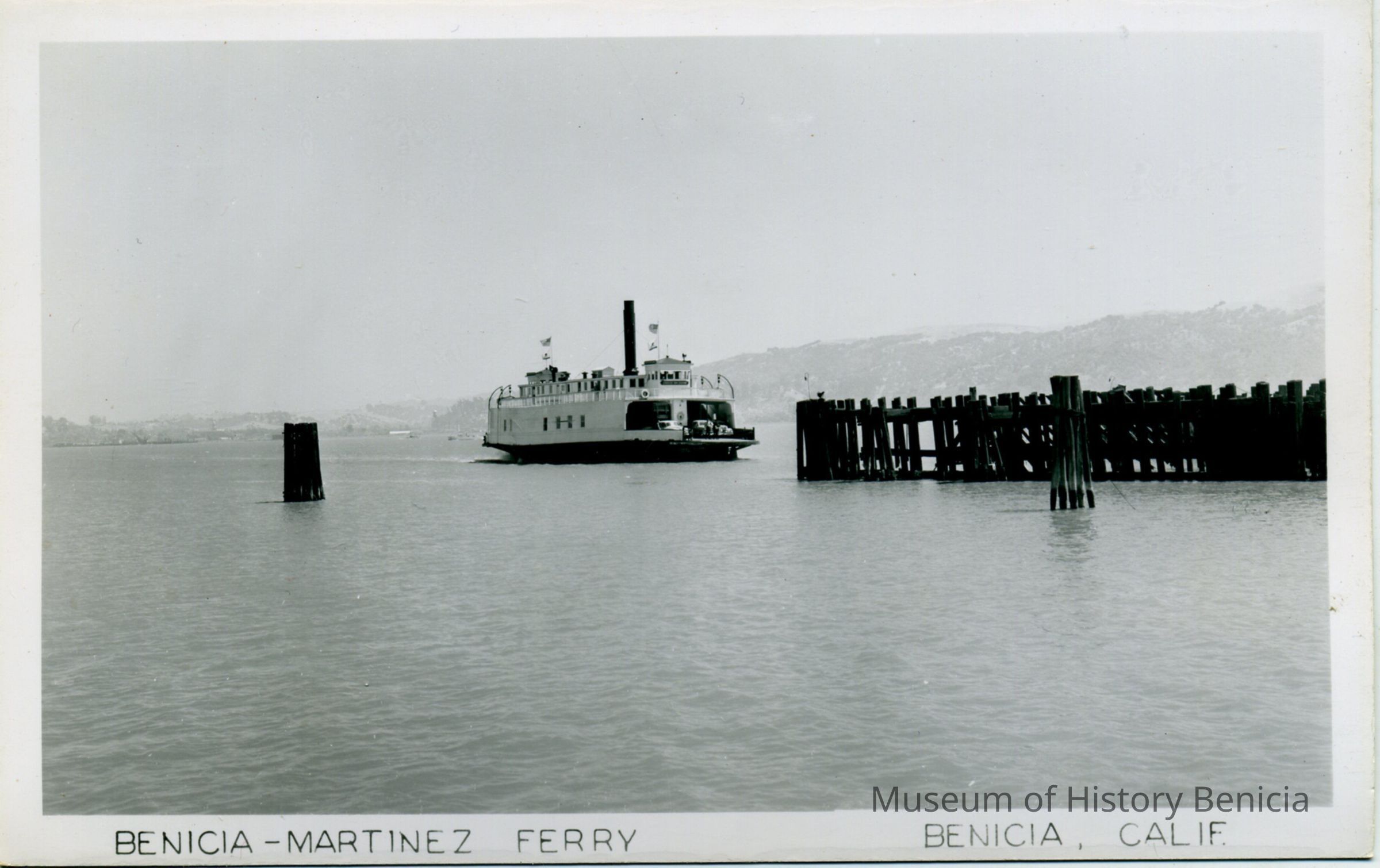 Postcardof the Benicia-Martinez ferry pulling into dock in Benicia.The back is a divided back card unused.