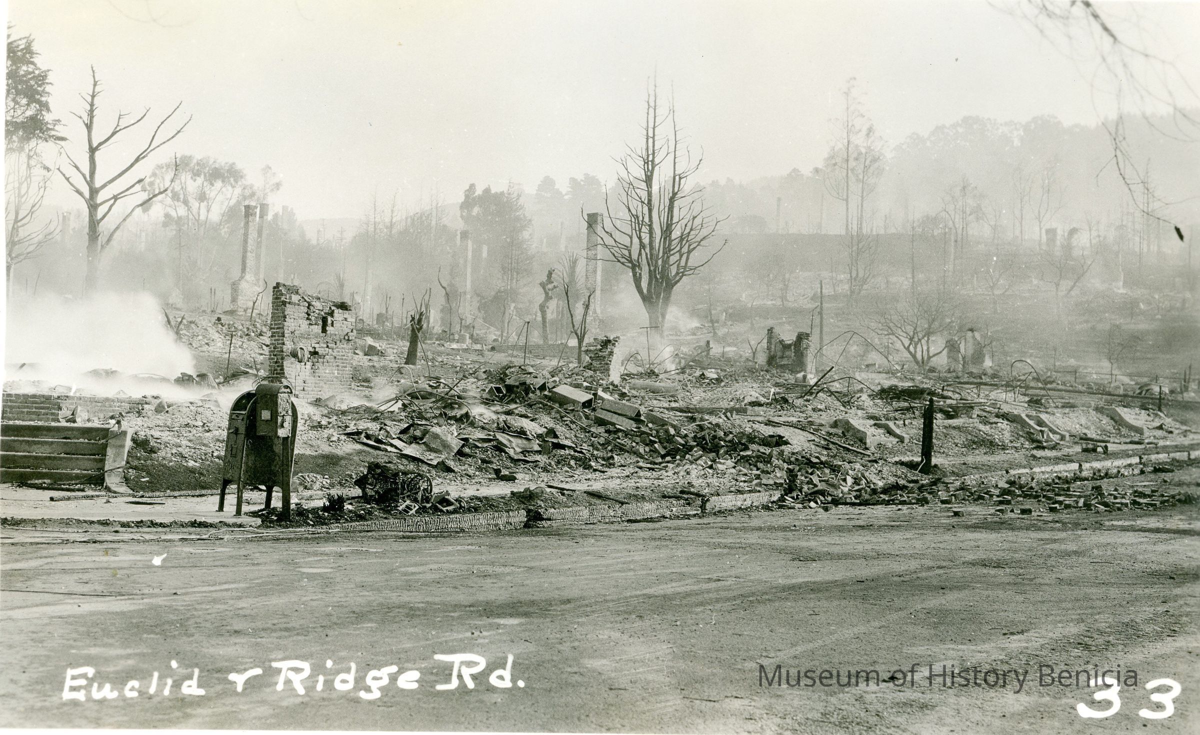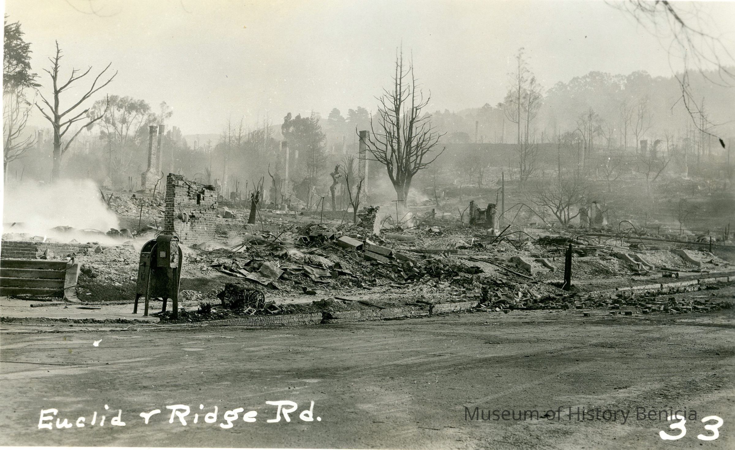 This is a divided back postcard of the San Francisco 1906 earthquake. It says it shows Euclid and Ridge road. It is marked #33. Not sure what the number indicates.Collection