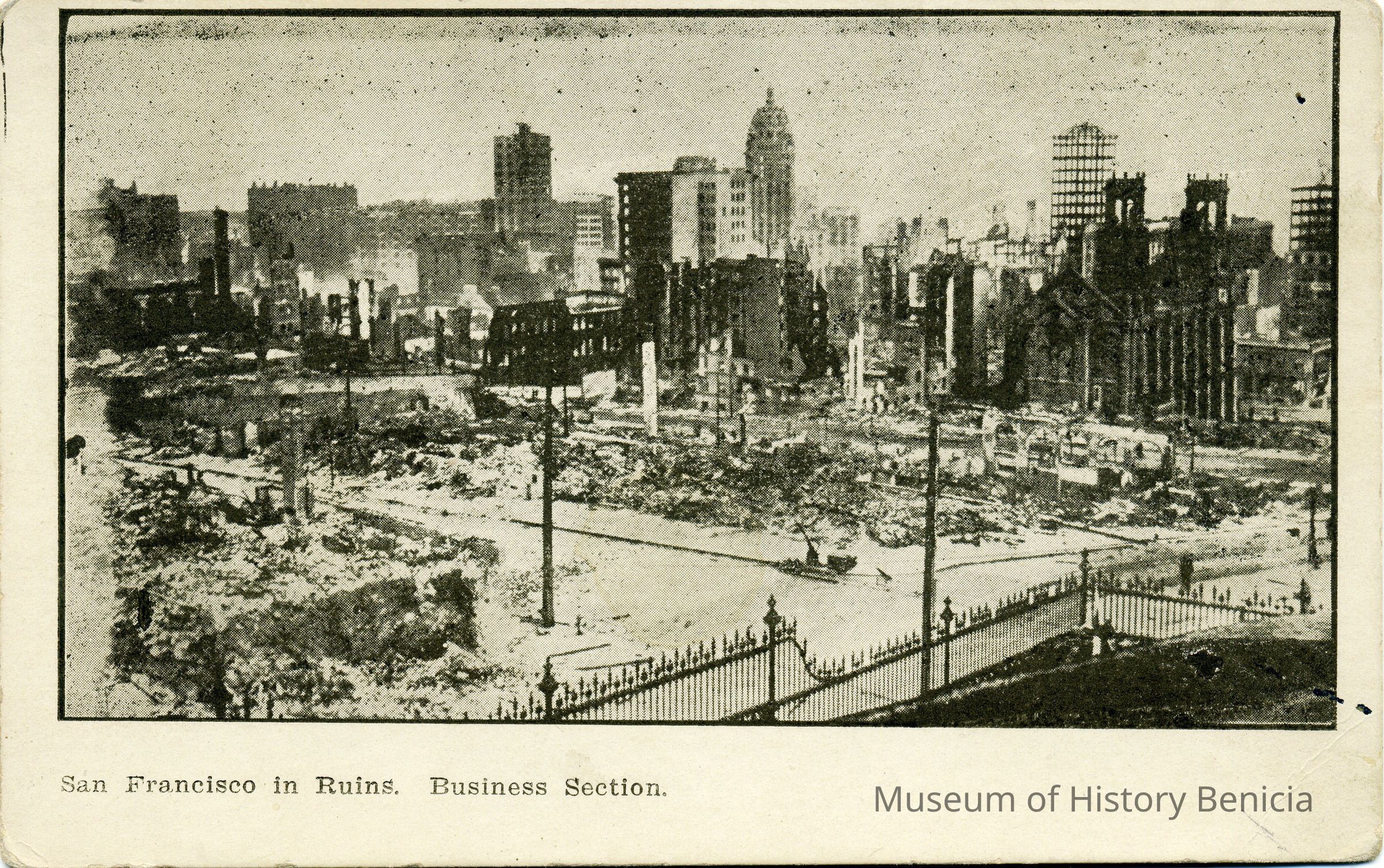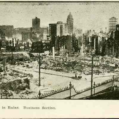This is an undivided back real photo postcard of the ruins of San Francisco business section from the 1906 earthquake.