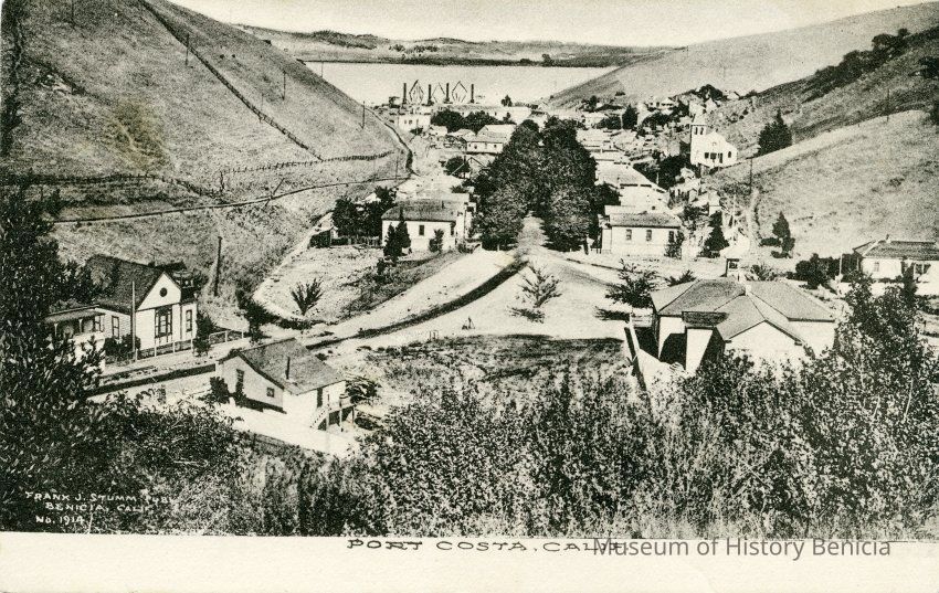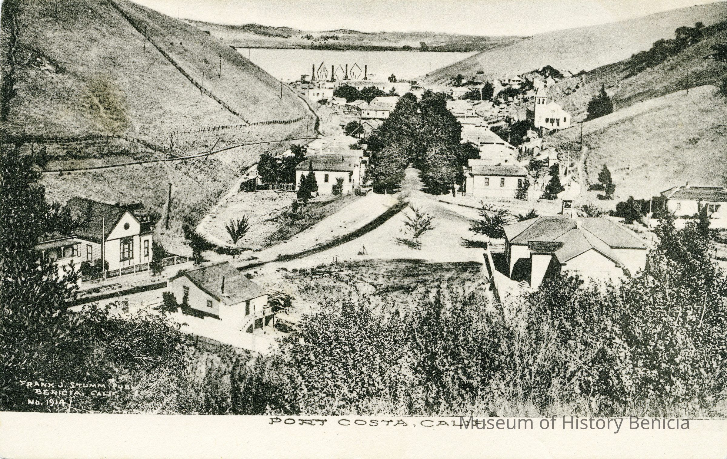 This is a divided back postcard. The photo is of Port Costa, CA . The card was published by Frank J. Stumm of Benicia, CA. The back is blank.