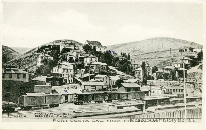 This is a divided back postcard. The photo is of Port Costa, CA from the ferryboat Solano. The card was published by Frank J. Stumm of Benicia, CA. The back is blank.Collection