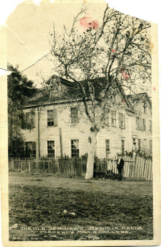 This is a postcard of the Old Seminary n Benicia. The caption says it is the former Mills College. The postcard was published by Frank J. Stumm.