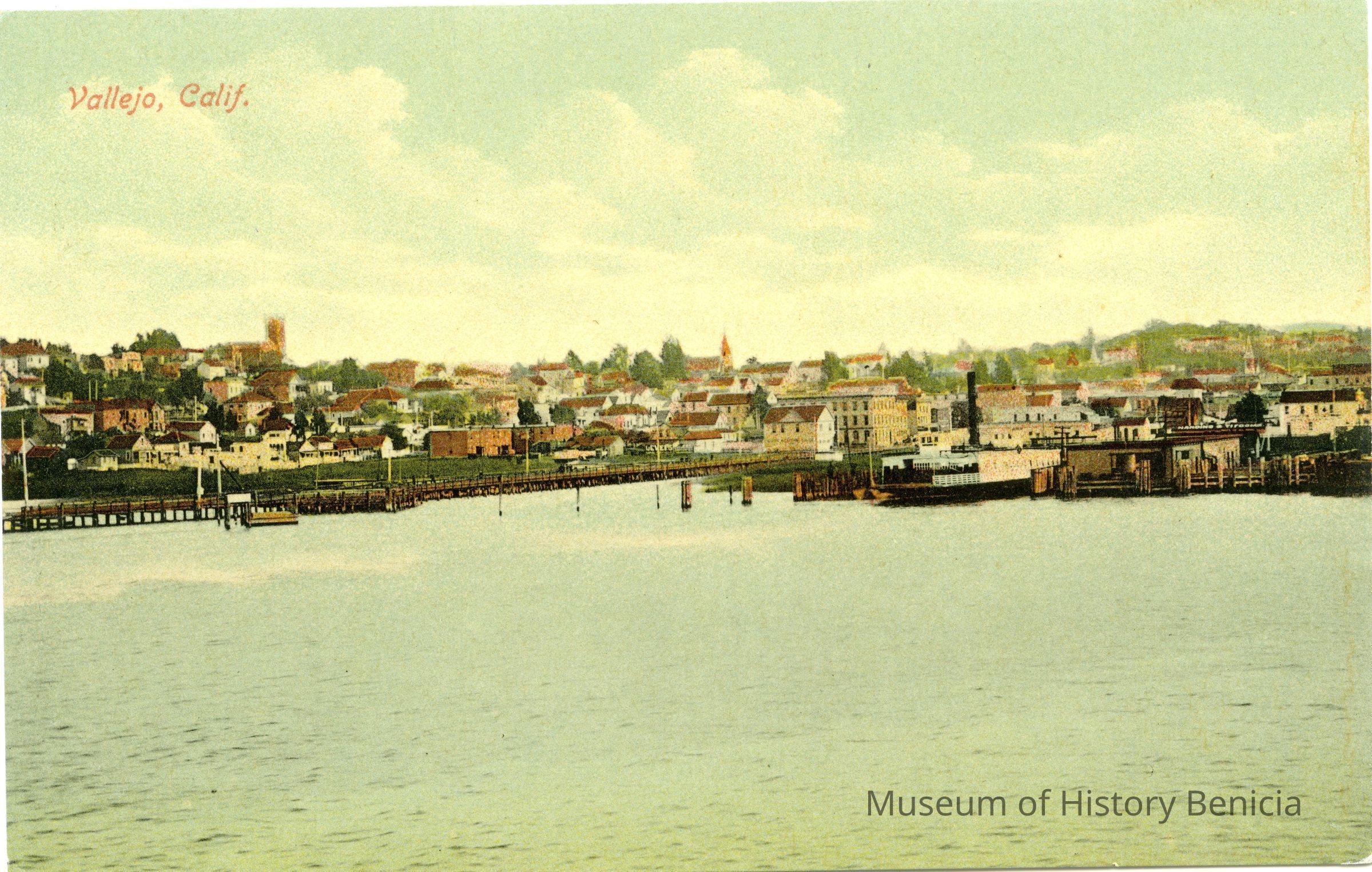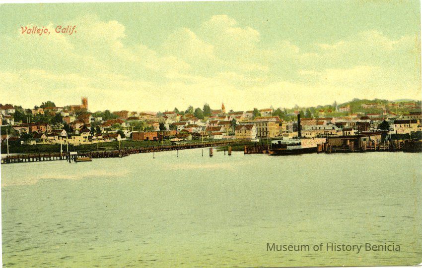 This is a colorized divided back postcard of Vallejo, CA. It is published by Frank J. Stumm of Benicia. The back is blank.