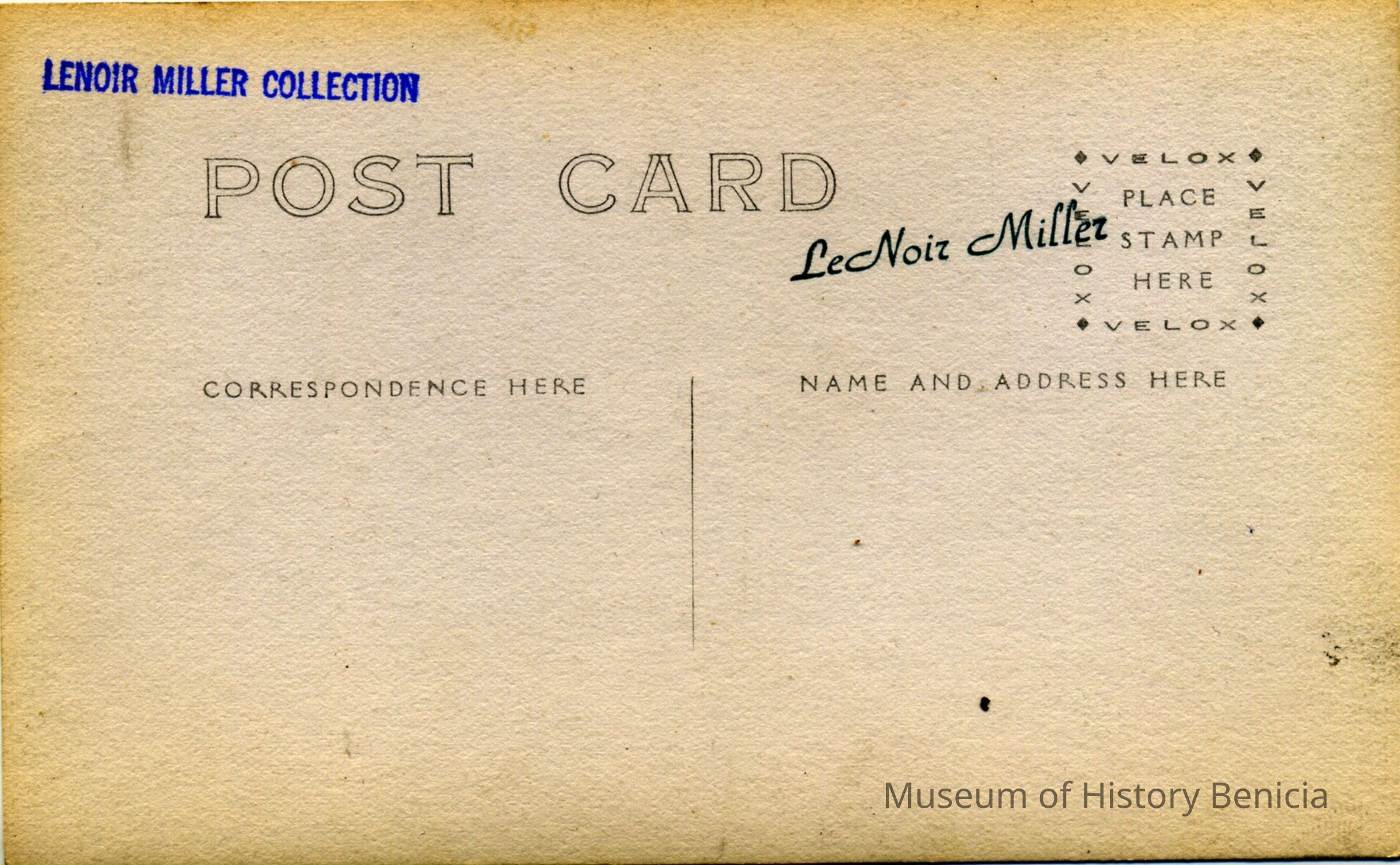 The postcard is a divided back postcard with a stamp box showing "Velox and with diamonds in the corner. This would indicate a date of 1907 to 1914.Collection
